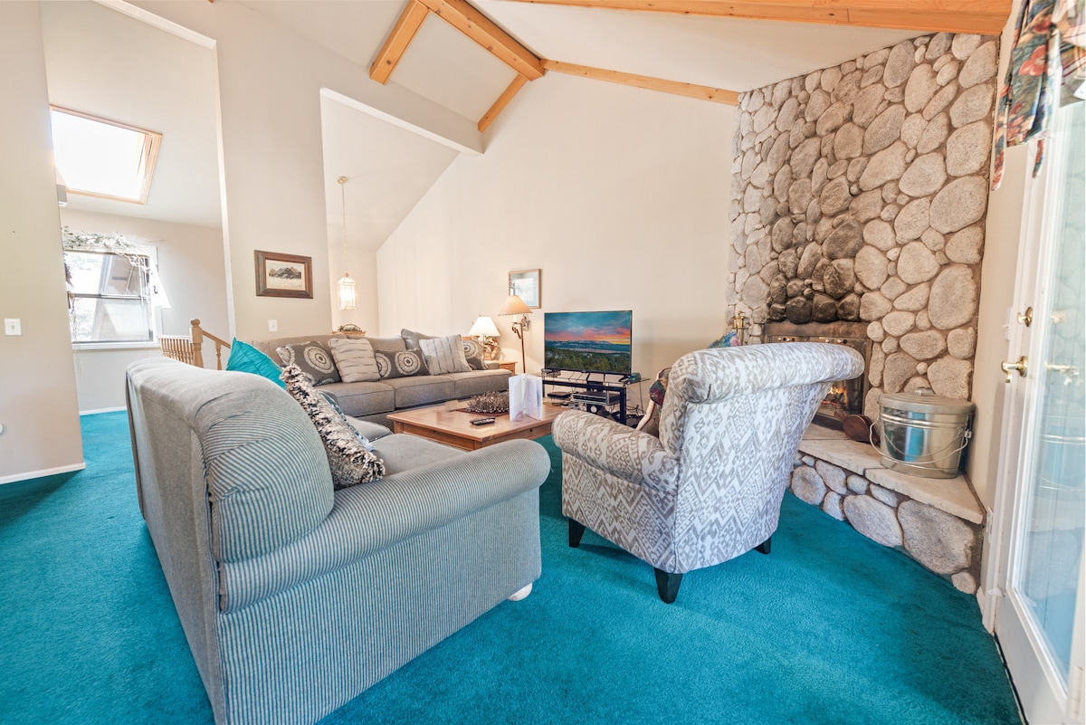 The Summit Chalet is a beautifully updated condo within walking distance of Snow Summit Ski Resort and a short drive to shopping and the Village. It features modern decor, a cozy living space with a wood-burning fireplace, a fully equipped kitchen, and spacious bedrooms. Enjoy outdoor dining on the deck with a charcoal barbecue. With amenities like laundry, multiple TVs, and convenient access to Big Bear, it's perfect for your mountain getaway.