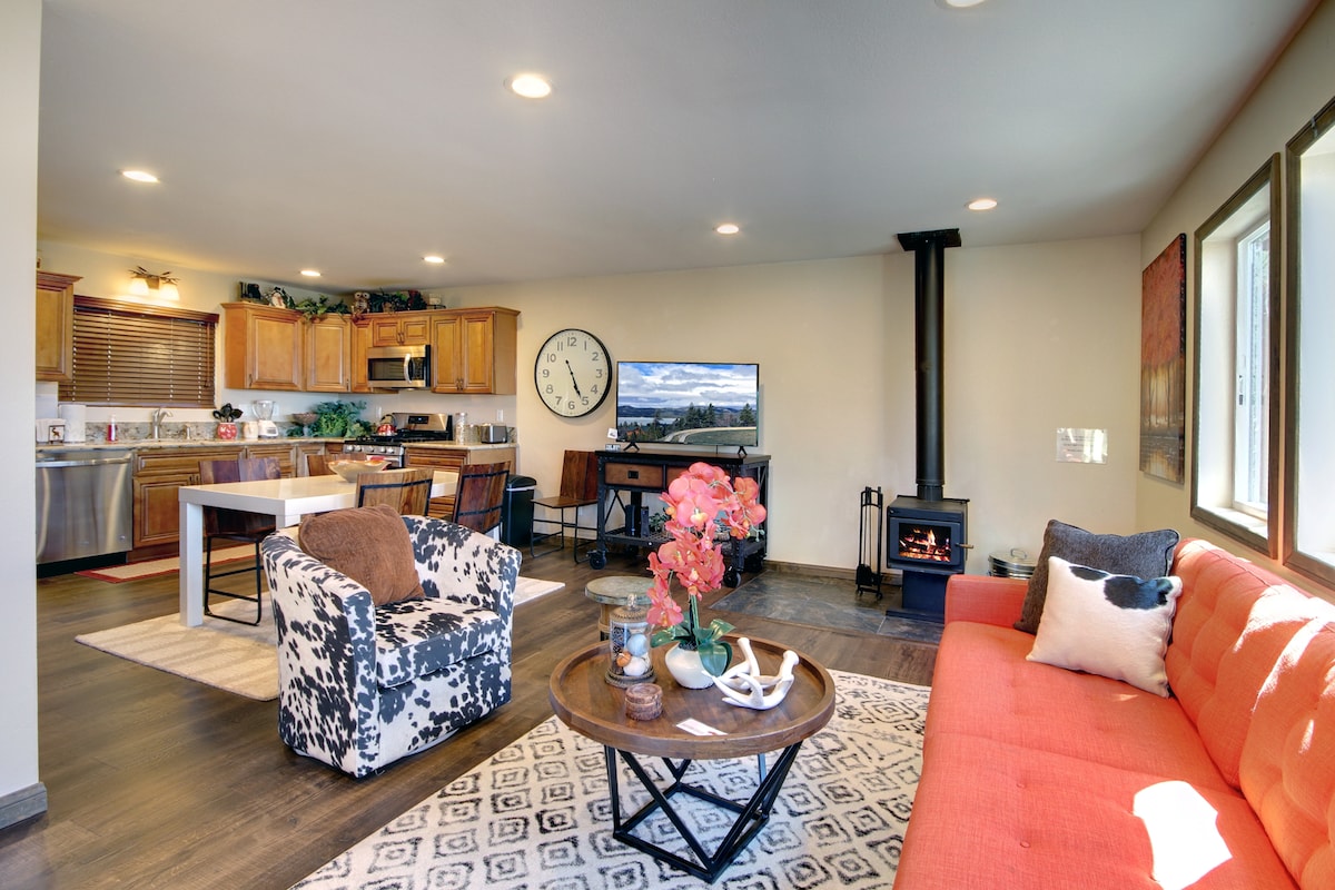 This newly decorated home is the perfect mix of modern, boho, and mountain! Wood and greenery accents remind you that you're on a mountain retreat, while all new furnishings ensure your stay will be cozy and comfortable. Take advantage of the 2 minute walk to the lake! Our home is equipped with high speed internet, a Smart TV, wood-burning fireplace, and a Keurig coffee maker with complementary coffee, tea, and hot cocoa.