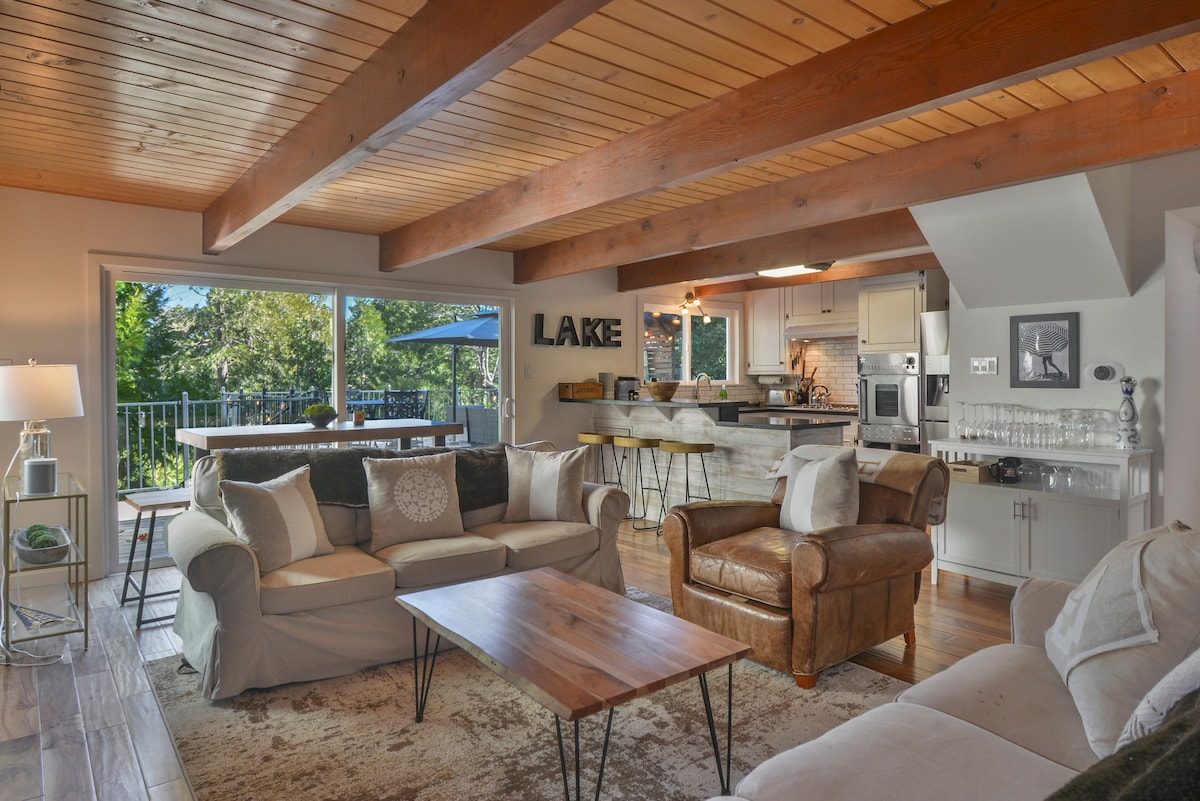 You can search far and wide, and not find an A-frame as impeccably designed as this one. It's one-of-a-kind for Lake Arrowhead and we can't wait for you to experience this gem in person. The beauty of nature surrounding the home perfectly complements the natural elements used within the home. You'll love the feeling of complete tranquility from the moment you walk through the door. We invite you to be our guest and come relax in the mountains. We do not allow fires in the blue fireplace.