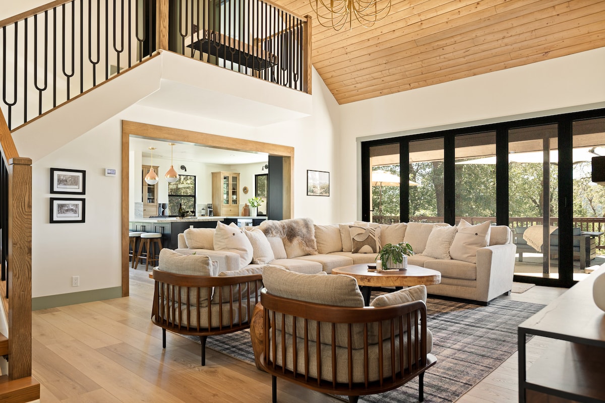 With 6 bedrooms and 5 bathrooms you can sleep large numbers, and the open floor plan and ample square footage gives you all the space you need for your big groups! There are 22 ft ceilings and a wall of windows, so you always enjoy the gorgeous lake view from every angle as well as the decks. New, clean, modern furniture, beds and linens. Each room is beautifully designed and breathtaking. Pictures cannot do it justice. 5 King size beds, 1 queen, 2 bunks, 2 queen size pull out couches.