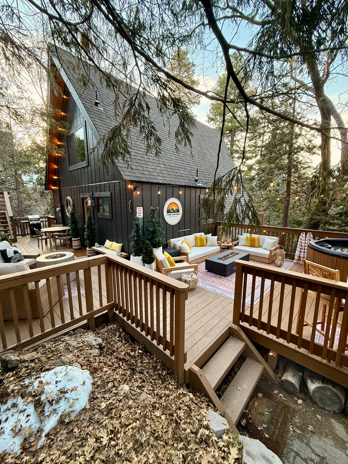 Escape to your classic A-frame sanctuary perched above Lake Arrowhead. This striking three-story cabin features a wall of glass windows capturing sweeping lake and forest views from nearly every room. Enjoy cozy nights by the stone fireplace, sunrise coffee on the expansive deck, or stargazing from your fenced yard — perfect for kids or pups to roam safely. With 2,100 sq ft of light-filled living space, this cabin blends mid-century design with modern comfort.