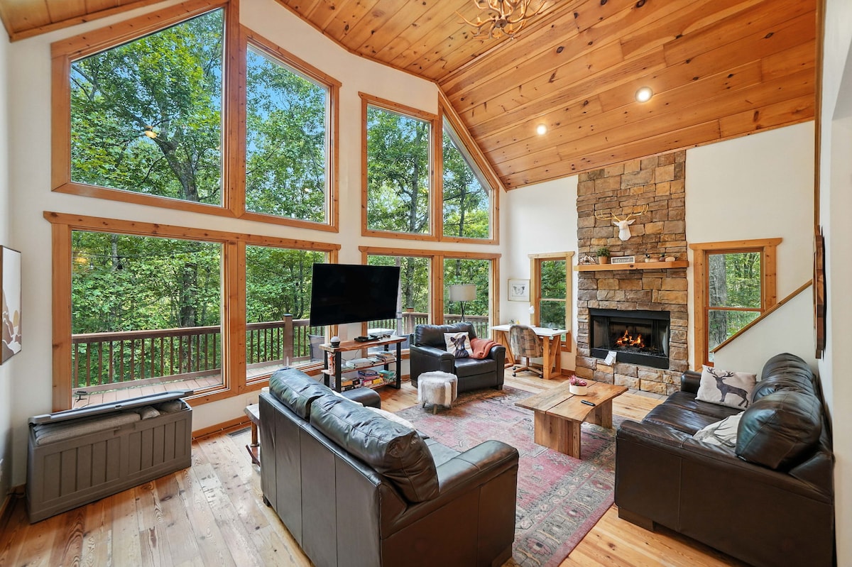 This Luxury Ellijay Cabin with mountain views is waiting for you! Enjoy the quiet! - Hot tub w/views - 5 Minutes to Carters Lake, boat ramp and Tumbling Waters Trail - LOWER DECK w/ Breeo Smokeless Fire Pit - Gas grill - 55" Roku TV, board games, and card games for indoor entertainment - Kid friendly bunk room w/books, toys, and legos - Keurig, Coffee Pot, and French Press - 20 Min. to Ellijay - 40 Min. to Blue Ridge - 45 Min. to Amicalola Falls State Park Come and rest, relax, and re-charge.