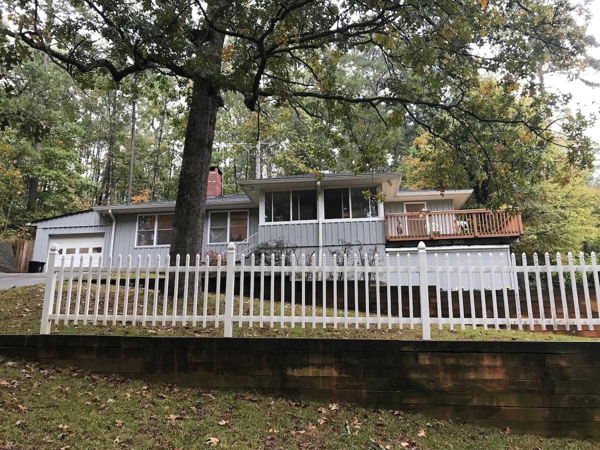Remodeled home on Lake Allatoona - only land between our home and the lake is property owned by the Army Corp of Engineers. You can walk down to the lake and enjoy the sights and sounds. Speaking of sounds you will faintly hear train horns on occasion throughout the day and night (sound travels across the lake). The house is open and bright, it faces South so plenty of light even in winter. Enjoy sitting on the deck or in the covered patio and enjoy the sights and sounds of nature.