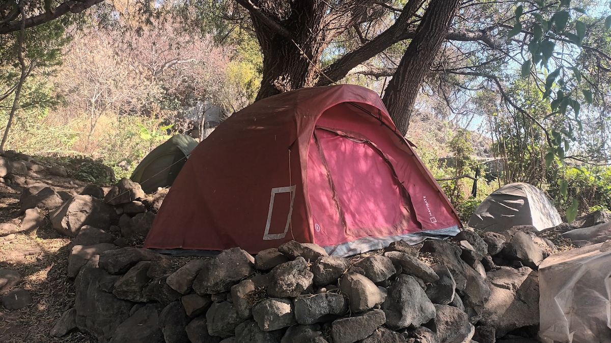 Sleep in a double camping tent surrounded by nature on the shores of Lake Atitlán. A simple and authentic space for travelers seeking calm and connection to the land, with meals included during your stay. The place is completely secluded, with no road access, only reachable by boat. It has solar-powered electricity with batteries and Wi-Fi via Starlink, allowing remote work. No luxury comforts, but silence, stunning views, and a real rural living experience.