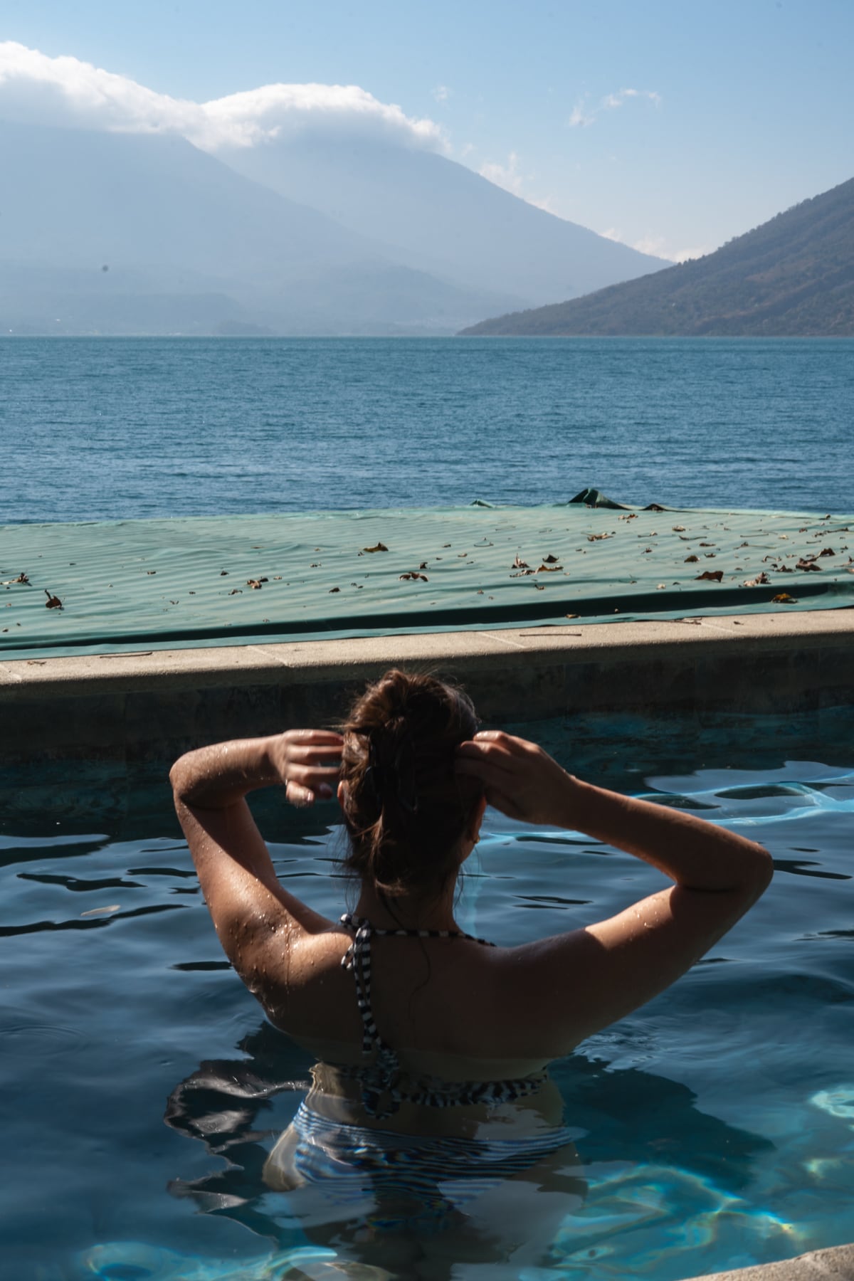 Located on the outskirts of Panajachel but worlds away from the hustle and bustle, this brand new, one-of-a-kind, two-story loft will wow you with its panoramic, 180-degree views of Lake Atitlan and surrounding villages. Soak in the views from almost every corner of this property – including the hot tub situated on a private terrace complete with large retractable umbrella and teak table and chair set. The upper level of the loft has a spacious balcony with oversized hammock & Acapulco chairs, living room, dining room and fully-equipped kitchen. On the lower level of the loft, you’ll find two bedrooms that are separated by a family room. The front bedroom has two twin beds (that can be combined to make a king-size bed) and ceiling to floor windows. The rear bedroom has a queen-size bed. The lower level of the loft also has a roomy bathroom, complete with rain head shower and plenty of hot water. The nearby villages of Panajachel and Santa Catarina Palopo can be reached on foot in about 15 to 20 minutes, or by tuk-tuk (three-wheeled moto taxi) in about five minutes. Other amenities include: • High-speed Wi-Fi • Smart TV with Netflix • Complimentary coffee, potable water in 5 gal jug, olive oil, paper towels are all included • Complimentary multi-lingual concierge service to arrange a variety of amenities including: ground transportation, lake tours in private boat (with or without bilingual guide), private cook, massage therapist, hiking and mountain biking tours that culminate with a gourmet picnic, shopping service to stock your rental with any beverage or grocery items you would like to find upon arrival. A complete list of amenities will be sent to you upon confirmation of your reservation • Complimentary laundry service This loft can be rented together with the adjoining (mirror image) loft accessed through locking double doors on the balcony. Prices include housekeeping service every third day. Fresh towels, bed linens, etc are available apartment request.