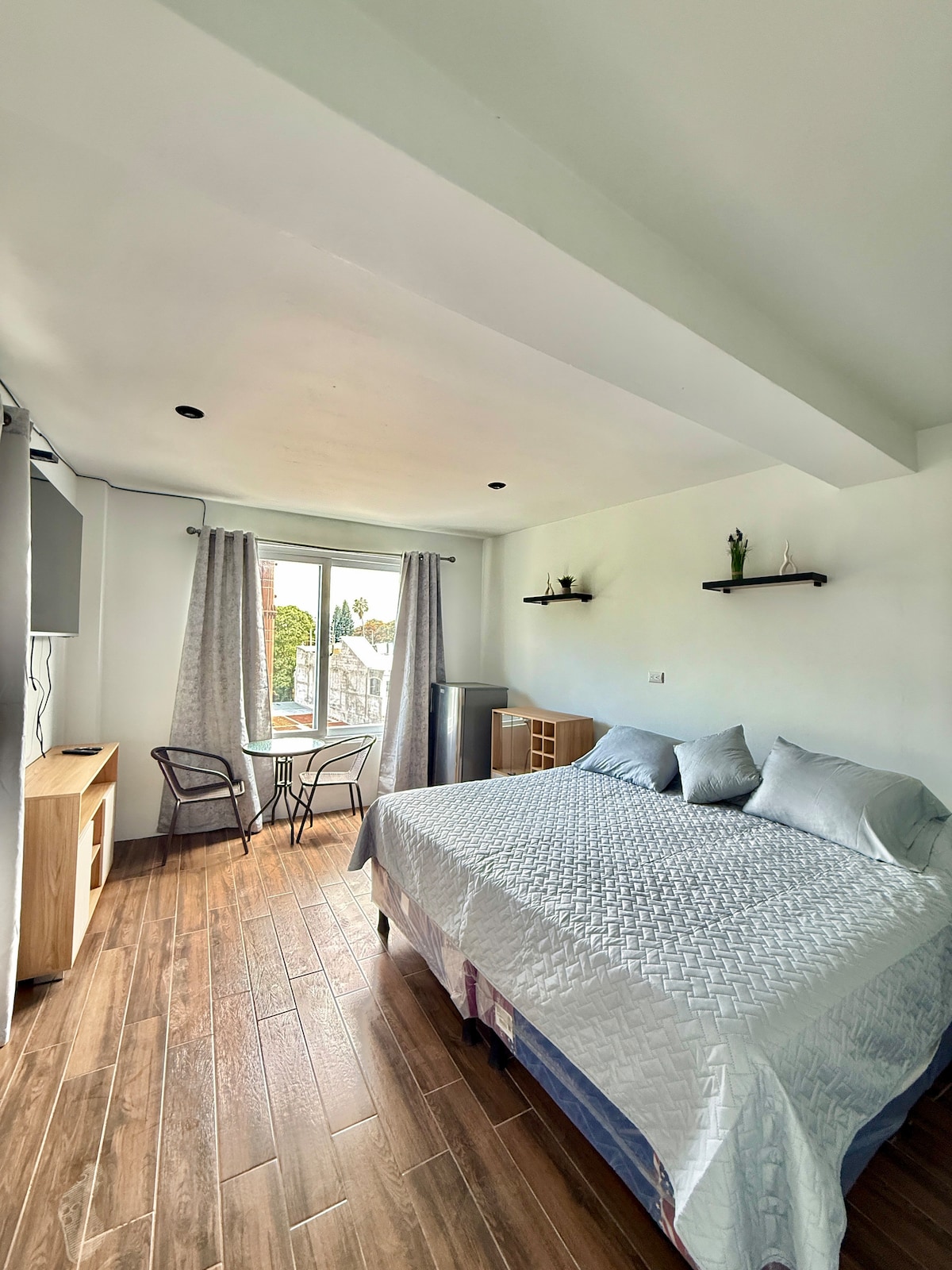 Descansa y reconecta en esta encantadora habitación ideal para parejas, ubicada en el corazón de Panajachel. Disfruta de una espectacular vista directa al majestuoso lago de Atitlán desde tu balcón privado. La habitación combina comodidad y estilo, con cama king, baño privado, detalles acogedores y acceso a terraza con una increíble vista. Perfecta para ver el amanecer junto a tu persona especial o compartir una copa al atardecer. Un refugio íntimo, rodeado de naturaleza y paz.