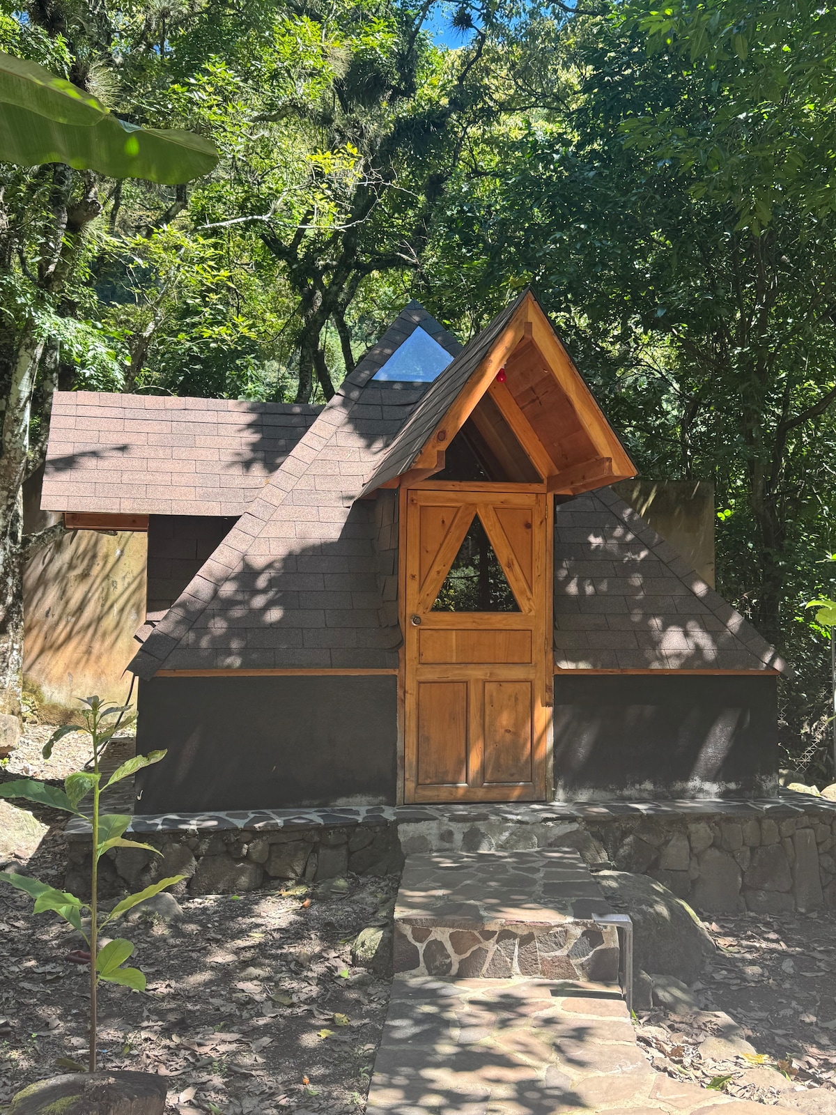 Our pyramid cabins offer more space and privacy, with a unique geometric design and room to comfortably work or create. Each pyramid includes a dedicated desk, natural light, and a peaceful atmosphere ideal for focused work, writing, or reflection. A great choice for creatives and remote workers who want their own private space while staying immersed in Maestro Valley’s nature-filled wellness environment at Lake Atitlán.