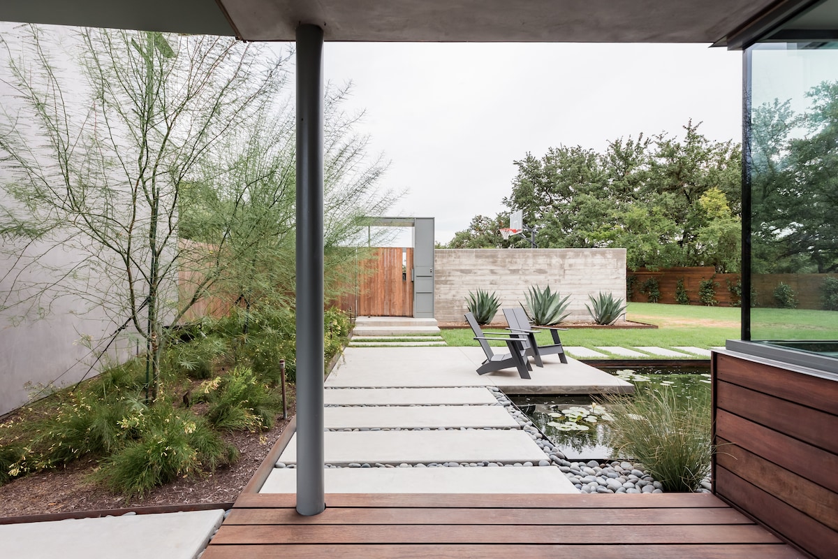 Experience true Austin life in our modern sun filled backyard guest suite. We designed our studio loft to be modern, comfy, and showcase our designs as well as those of other local artisans. It is nestled behind our home in north central Austin, in a quiet but urban neighborhood. Enjoy independent businesses within walking distance, or head out into the city with everything a quick 10-15 minute ride away. The guest suite has loads of amenities, its own private entry and outdoor garden!