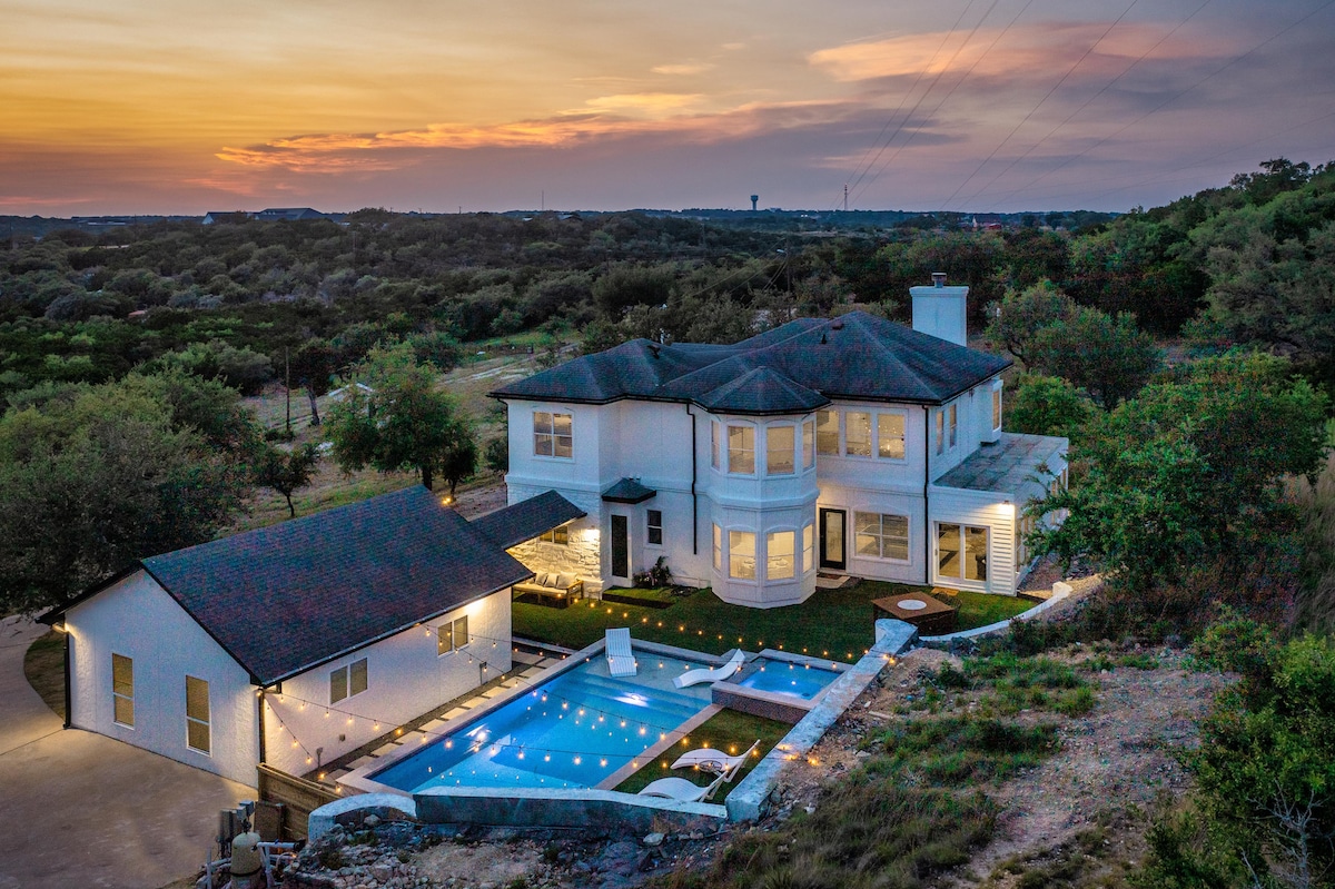 Luxury cabins two blocks from Lake Austin & world renowned spa. Both cabins are yours! Perfect getaway for a group of 8 with sprawling decks, large backyard with cowboy pool, fire pit, Blackstone grill, playground oasis for the kids & corn hole all on football turf. The entire property is yours to enjoy during your stay. The space is very private & has an inviting vibe. Each room has smart tv's, memory foam mattresses & fast wifi. Rent a boat or bring your own and enjoy beautiful Lake Austin!