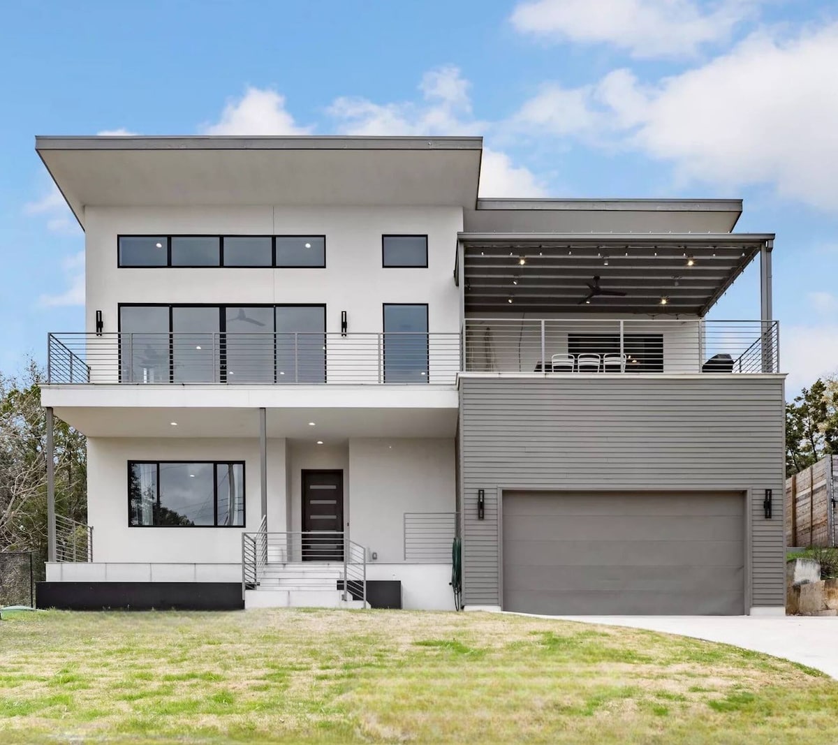 现代湖景度假屋:露台 + 烧烤