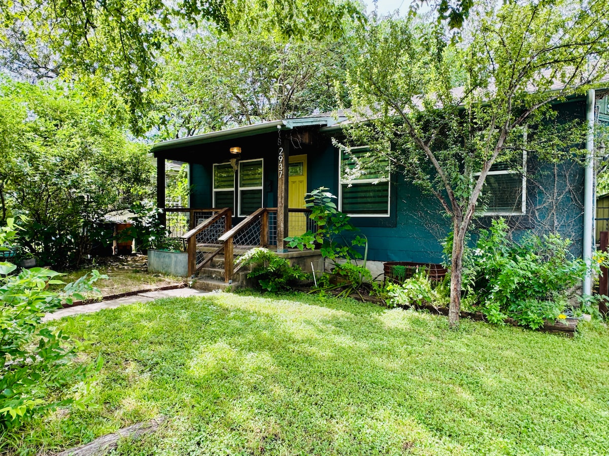 This cozy Austin cottage blends old-school charm with modern comforts. Centrally located in a quirky, walkable neighborhood, it’s steps from coffee shops, cocktail bars, restaurants, vintage stores, record shops, and more. Relax in your private lush garden oasis, safe and snug yet just a short drive to 6th Street, Rainey, Zilker Park, and downtown attractions. Guests love the authentic Austin vibe, great location, comfy beds, privacy, and thoughtful touches that make it feel like home.
