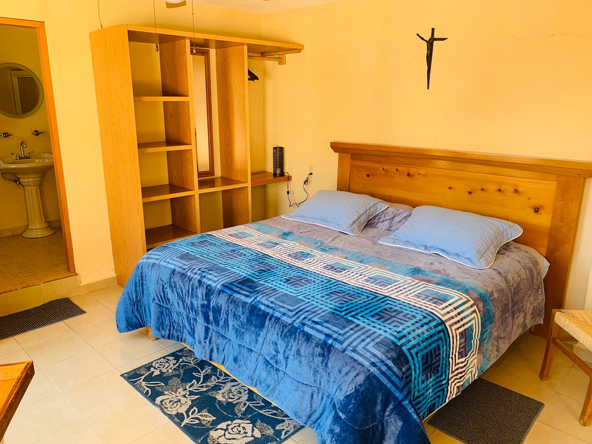 La casa se encuentra en lo alto del cerro del pueblo de Valle de Bravo,son 800 mts. de la casa a la plaza de Valle, puedes bajar caminando y subir en taxi. La habitación que ofrezco tiene 2 camas una mesita con 2 sillas, TV Sky, WiFi, baño privado, toallas, sábanas,jarra de agua con 2 vasos, frutero. Terraza con 2 sillas. Puedes estar en todas las áreas y terrazas de la casa y utilizar la estancia cocina y refrigerador.