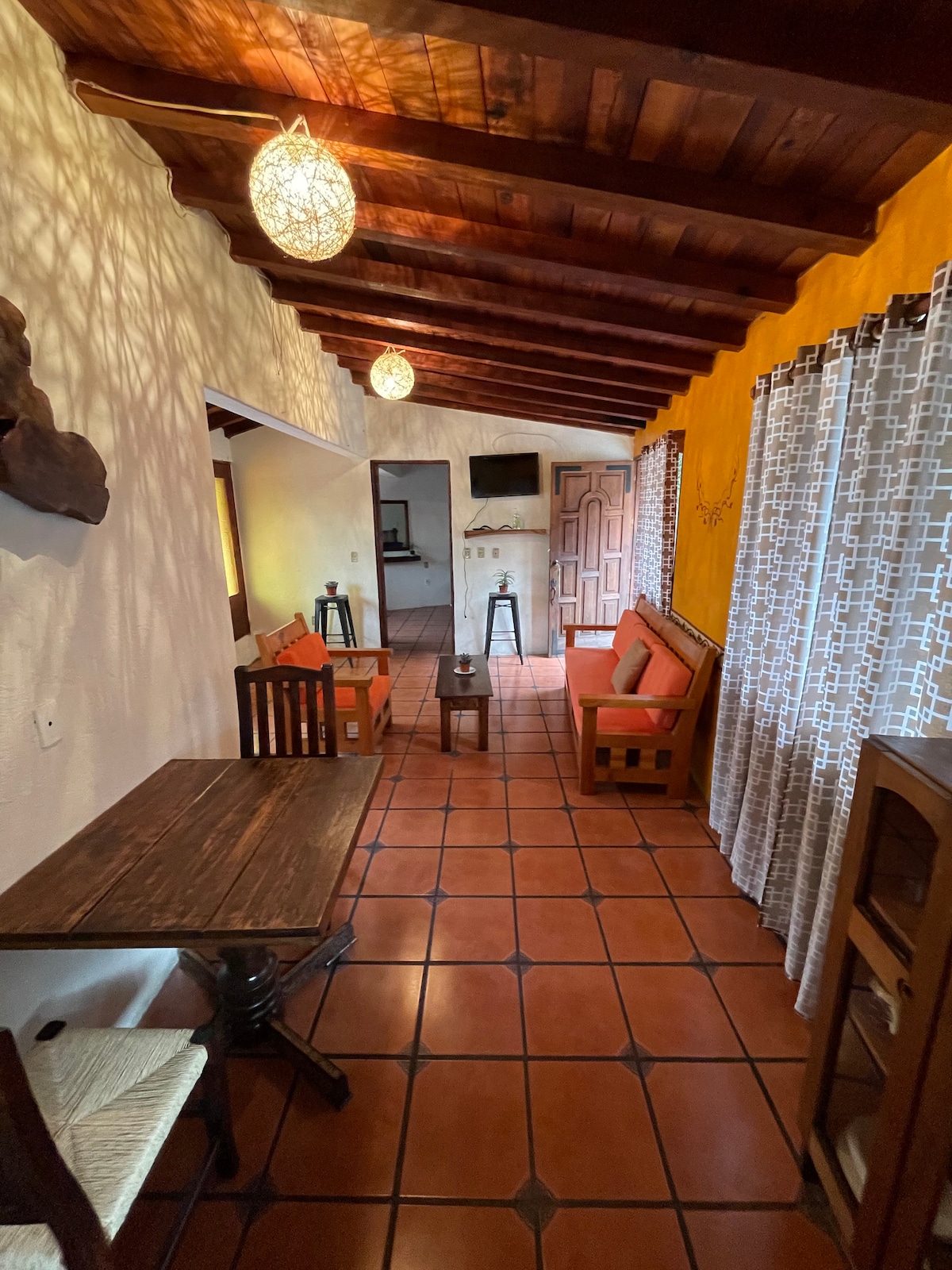 Es un pequeño loft con un balcón ideal para disfrutar en pareja a cualquier hora del día. Tiene cocineta, baño privado, entrada independiente, a 1 cuadra y media del Mercado de Artesanías, sobre la misma avenida principal en la encontrarás restaurantes, tiendas y cajeros. Hay ruido exterior debido a que está a pie de calle, con buena ubicación a solo 8 minutos caminando del kiosco central del pueblo y de la estación de autobuses. Estacionamiento gratis a 1 cuadra y media.