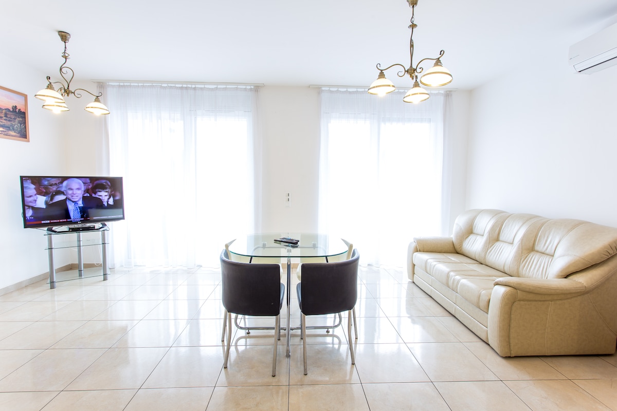 The apartment has two separate bedroom area and a linving room. All apartment has a balcony, include a seating area, a flat-screen TV with cable channels, an equipped kitchen, a dining area, and a private bathroom with a sauna. The kitchen features a hot plate, oven, dishwasher, and a fridge, as well as a kettle and a coffee machine. We offer a gratis welcome drink, water, coffe and tea in all apartment.