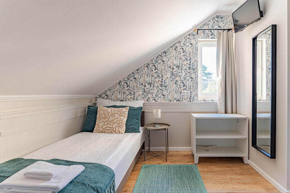 Modern, kényelmes stúdióapartman Alsóörsön, a Balaton partjához közel. Egy légtérben található a hálórész, a kanapé, a konyhasarok, hűtő és tévé, valamint külön helyiségben egy tágas, igényes fürdőszoba. Ideális választás pároknak, bicikliseknek vagy átutazó vendégeknek, akik egy kényelmes „Sleep&Go” pihenőhelyet keresnek. Légkondicionálóval felszerelt, hosszabb tartózkodásra is alkalmas.