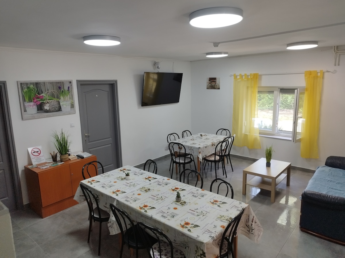 Szálláshelyünk csendes, nyugodt környezetben, a parttól 5 perces autóútra fekszik. Vendégházunkat egyben adjuk ki, nem kell idegenekkel osztozni . A házban 5 hálószoba, tágas nappali, 2 fürdőszoba , felszerelt konyha, wifi és légkondicionálás várja. Sok szórakozás minden korosztálynak: darts, csocsó, biliárd, ping-pong , áprilistól október végéig fűthető 8 x 4 méteres medence, fedett nyári konyha kemencével, bográcsozóval,grillezővel . Egész évben várunk nagy családokat, társaságokat.