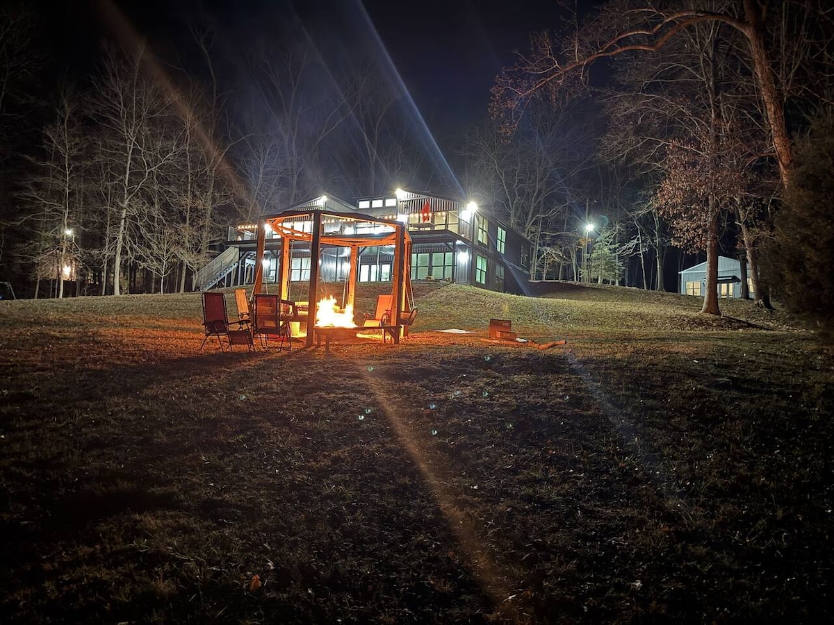 Escape to this cozy woodland cabin — perfect for couples, families, or friends. Relax in the private hot tub, sip wine by the glowing fire table, and enjoy all the comforts of a fully equipped modern home, tucked away in the Kentucky woods.