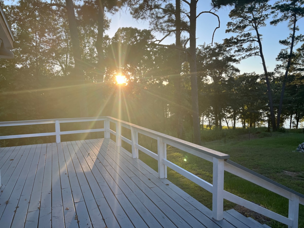 Relax with the whole family at our beautiful and serene A-Frame. Nestled within a forest of pine trees and fronting the lovely Lake Bob Sandlin, Burning Daylight, is your home away from home. A full kitchen, two en-suite bathrooms, bunk room with bathroom and cozy loft make this place perfect for a large family or a couple of groups! The back deck overlooks the lake for quiet mornings with a cup of coffee while the boathouse and dock make for a great space for all of the lake activities.
