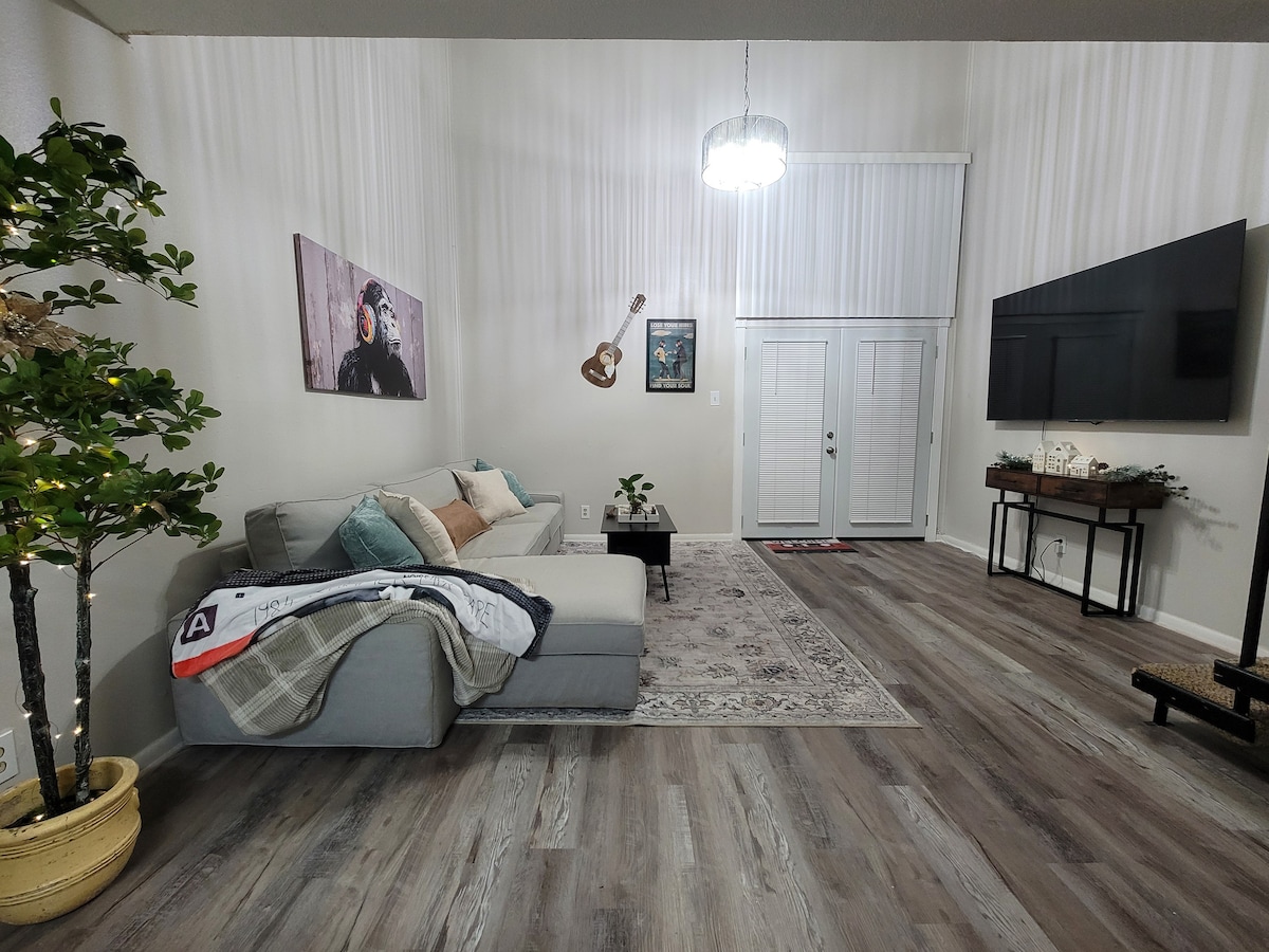 One bedroom, one bath efficiency apartment. You have the whole apartment to yourself. It is approximately 560 sq ft. It is close to Howard Payne University and town. Quiet neighborhood and quiet neighbors. There is a covered parking space in the back of the house. You can sleep 2 people here, maybe 1 on the couch in the living room. There is a King size bed in the bedroom.