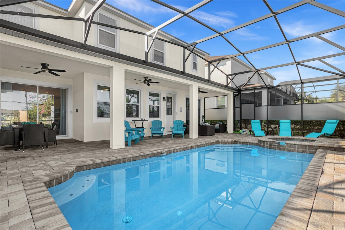 8分钟到迪士尼,带泳池边剧院和游戏室