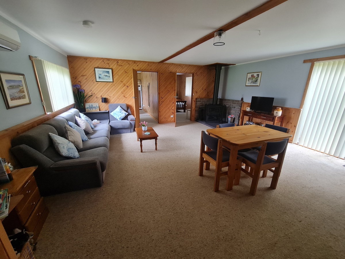 A charming hobby farm just 10 minutes from Strahan's center. Our delightful menagerie includes sheep, alpacas, chickens, and a friendly goat. At night, the property comes alive with wallabies, rabbits, bandicoots, and possums. Your stay promises warmth, cleanliness, and comfort, as attested by our glowing reviews. We're dedicated to enhancing your experience, so feel free to inquire. Extended stays and direct bookings are warmly welcomed.
