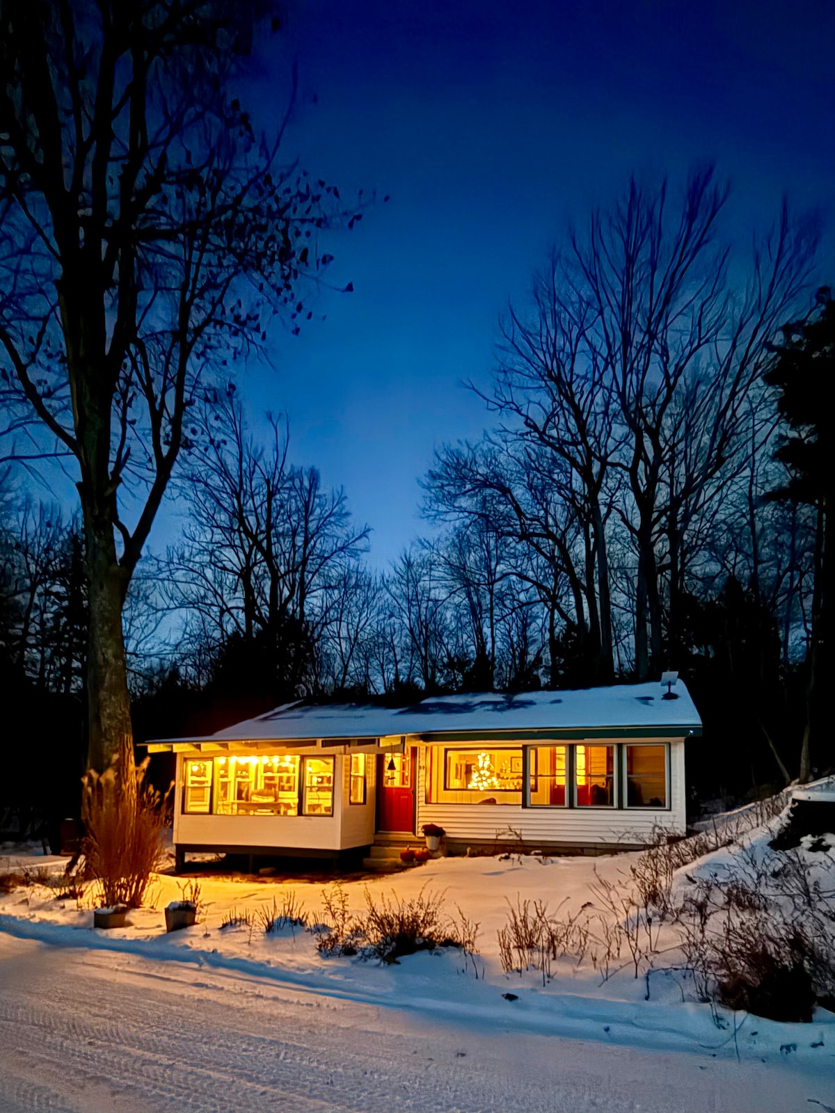 Welcome to our treehouse inspired, modern cabin overlooking The Kenfield Brook on Terrill Gorge. We are located 5 miles from Stowe and its attractions, and just a few minutes from downtown Morrrisville with all its amenities. Just upstream from the picturesque Cady’s Fall swimming hole and across the brook from the amazing Cady’s Falls bike trails, our cabin is perched atop the hillside. With its simple, minimalist design it’s easy to immerse yourselves in nature and feel at home in the trees.