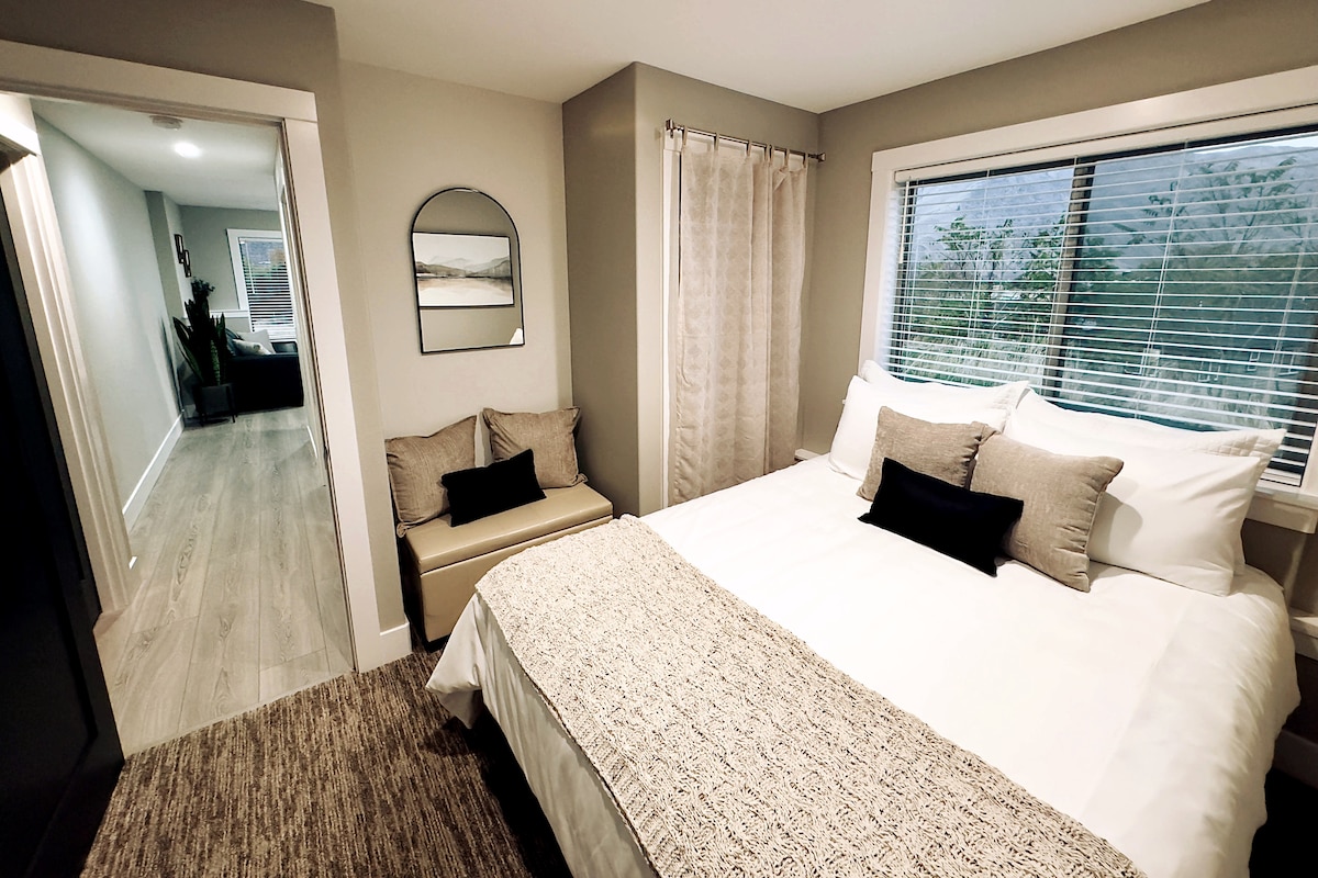 Maximum 2 adults, 2 kids. Clean, stylish upstairs one-bedroom in a detached ADU—perfect for a couple’s retreat, family getaway, or adventure base. Just two blocks from village shops, restaurants, coffee spots, and holiday lights—no car needed! Walk to Riverfront Park with trails, picnic areas, and playground. Features a king bed and comfy queen sofa bed for a restful night in a quiet, charming location. *owners live on property *Additional adults are $50 per adult per day after prior approval