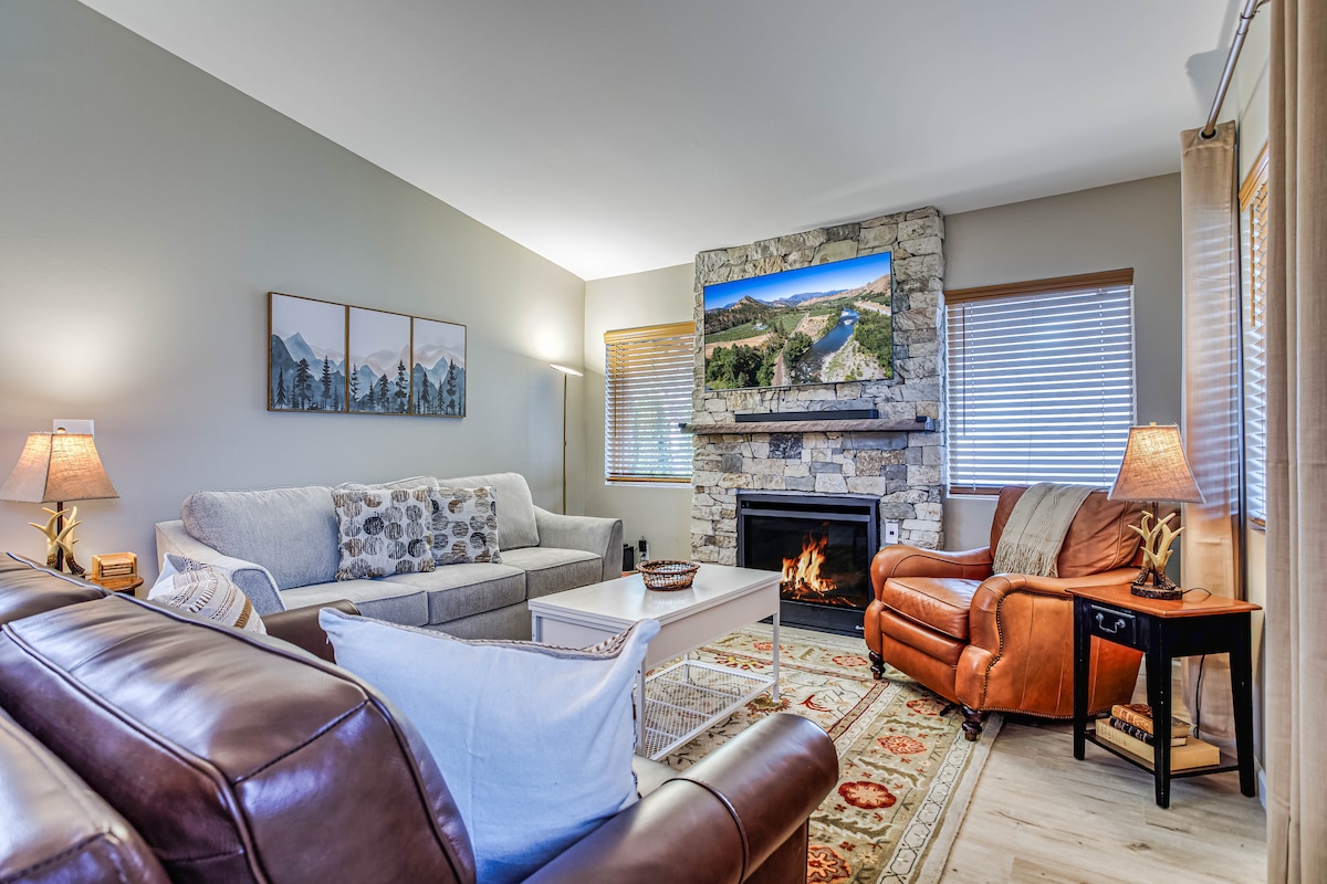 Escape to our Lovely Mountain Retreat on the edge of town. Stay cool with A/C throughout while you enjoy the premium furnishings and a fully stocked kitchen. Snuggle up around the fireplace after a day of exploring and play some games. Walk across the street to the Adventure Park! Just a 15 minute stroll to town. A true slice of heaven in Leavenworth. We call it our "Cabindo" because it's a condo that feels more like a Cabin:) You'll love it!