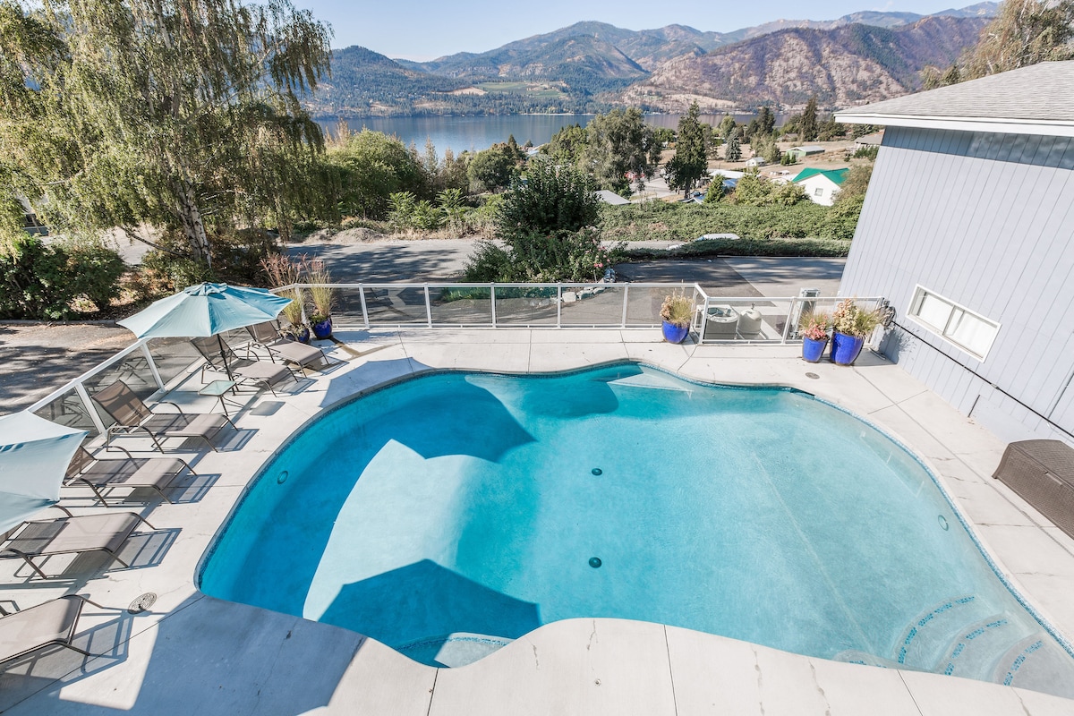 2026 Pool Opening: April 16 Welcome to the Chelamptons, a dream lakeside retreat in Lake Chelan! This stunning lakefront property offers the perfect setting for family getaways, group gatherings & peaceful escapes. With a private hot tub, saltwater pool & 100+ feet of waterfront w/ lake access & a floating buoy, you’ll be able to make the most of every sunlit moment year round. The home, pool & lake level each feature panoramic lake & mountain views and well-curated spaces to gather & unwind.