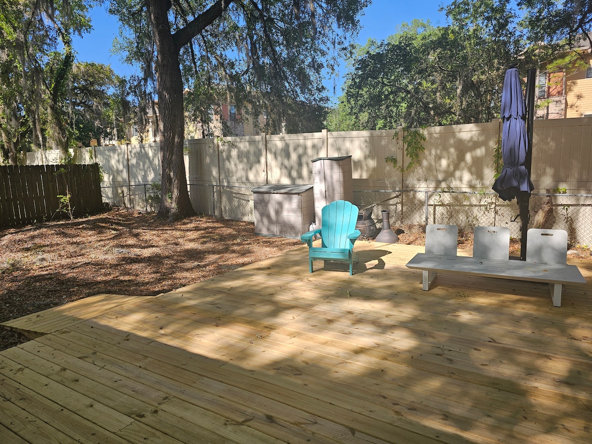 豪华2/2带水疗、火坑和围栏庭院,靠近UF!