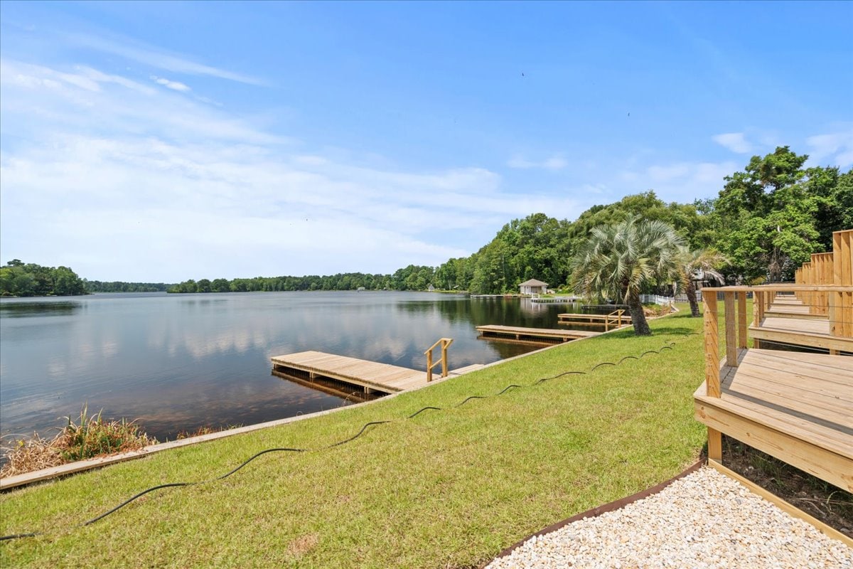 Welcome to the lake! You will have lake access for your boat or water toys with dock space to tie up during your stay. You are free to swim & fish from the community dock located just steps from the wrap around porch where you're sure to enjoy your morning coffee and evening sunsets. Located a short drive from several golf courses, boat rentals, state parks and nature trails. Grocery, restaurant and retail options are a short drive into town.
