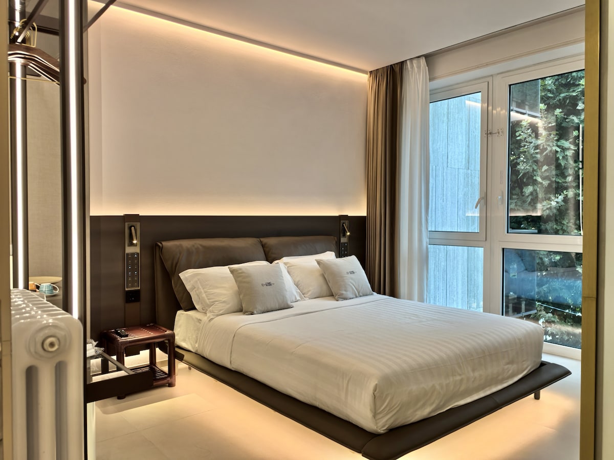Amona by Comorooms offers luxury rooms in the heart of Como, at Piazza del Popolo 14, just a few steps from the Cathedral. Modern and elegant interiors with king-size beds, fine furnishings, and large bright windows. Bathrooms feature crystal showers with adjustable privacy, electronic toilets, and designer heated towel rails. Each room is equipped with high-speed Wi-Fi, smart TV, independent air conditioning, coffee machine, and kettle. An exclusive stay combining comfort and technology.