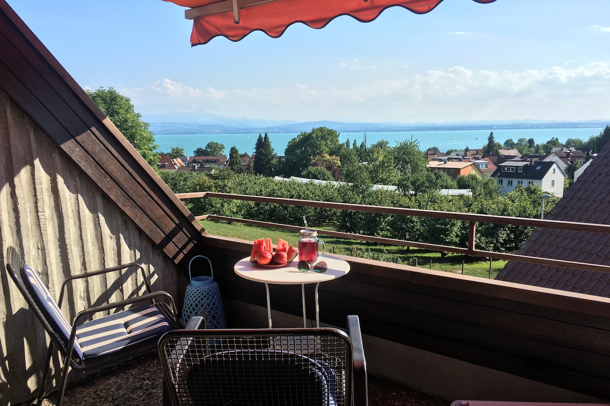 Cozy Apartment in the attic with separate entrance and stairwell, with clean bathroom, Tinykitchen and a balcony overlooking Lake Constance and the Swiss Alps. Enjoy your morning tea or coffee on the balcony and feel like you are on a retreat. Free use of comunity kitchen with full equipment. Private parking in front of the house, also space for caravans and campers. We rent the room on a weeky basis.