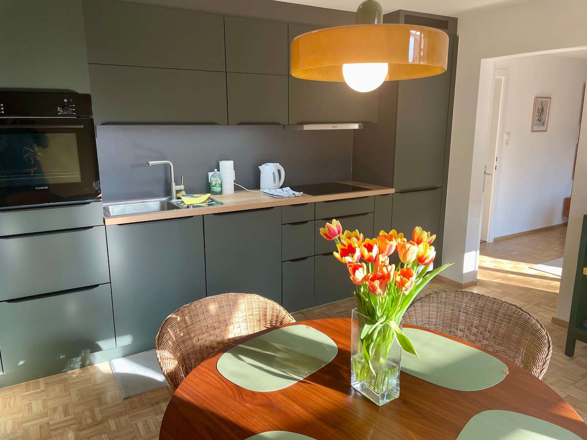 Liebevoll eingerichtetes Appartment mit vielen Deteils im Süden von Ravensburg-Obereschach, zentrale und dennoch ruhige Lage zwischen Messe Friedrichshafen (9km) und der historischen Altstadt Ravensburg (7km). Der Bodensee (z.B. Friedrichshafen Uferpromenade) ist mit dem Auto in ca. 20 -25 Minuten erreichbar. Die Wohnung ist voll ausgestattet, ideal für Paare, Alleinreisende und Geschäftsreisende sowie kleine Familien. Wir freuen uns sie bald begrüßen zu dürfen.