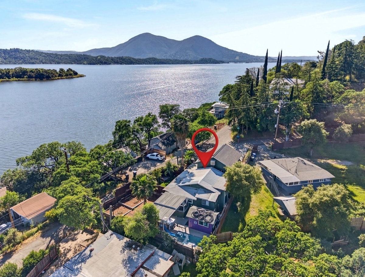 Experience the tranquility of lakeside living at the Bee Haus, perfect for a couple or small group seeking a peaceful escape. This charming retreat boasts sweeping waterfront views, high ceilings, an open concept living space, wraparound deck, and PRIVATE DOCK! Truly the perfect blend of modern comfort and natural beauty. When you’re ready for adventure, explore the lake by kayak, rent a speed boat/ jet skis, hike Mt. Konocti, wine taste at the Mercantile, or fish straight from our private dock!