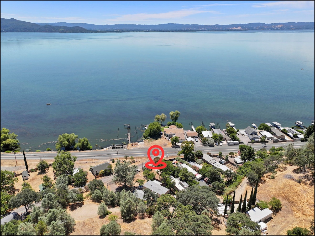 Clean space right on the water! Private docks for all of our airbnb guests and 6 SHORT term stay RV sites to fish from or keep your boat over night. Right across the street from the Clearlake Oaks Boat launch. Private entrance. No cooking stove, but it has a microwave and refrigerator. Connected to another airbnb with 5 beds, that will be available for rent in April, so until then, it is not a shared yard. Soon you can book both to accommodate all your friends!