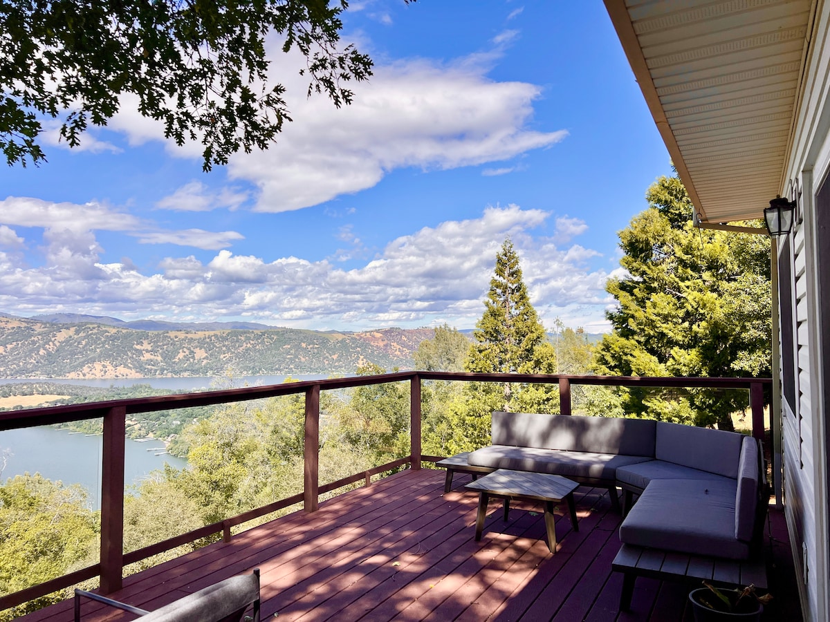 If you’re looking to getaway, this home high in the hills surrounding beautiful Clear lake, is the retreat for you! Enjoy panoramic views of the lake and mountains. Very quiet, the perfect stop between the redwood trees and the Bay Area Relax on the deck shaded by mature oak trees and watch the osprey’s gliding below you or use the house as a jumping off point. Mendocino National Forest, just 20 minutes away, offers endless possibilities: mountain bike and explore the local trails