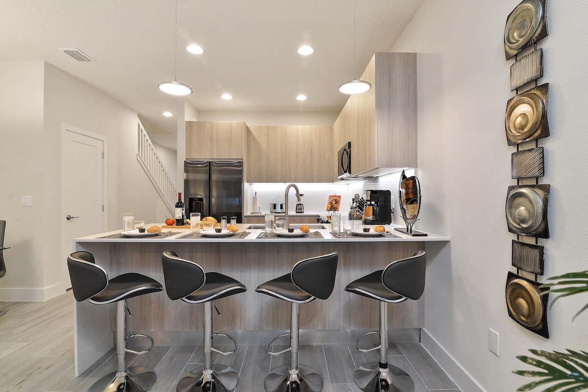 Welcome to our Magical Hideaway, a home-away-from-home that will perfectly complement the lasting memories your family will be creating while visiting the happiest places on earth! This brand new, professionally-appointed 3 bedroom, 3 bathroom fully equipped townhome with all of the comforts of home and the resort-like luxuries with a private dip pool, patio with no rear neighbors, is splendid for families, clubhouse, Games room, GYM. Just short drive away from Animal Kingdom, may restaurants!