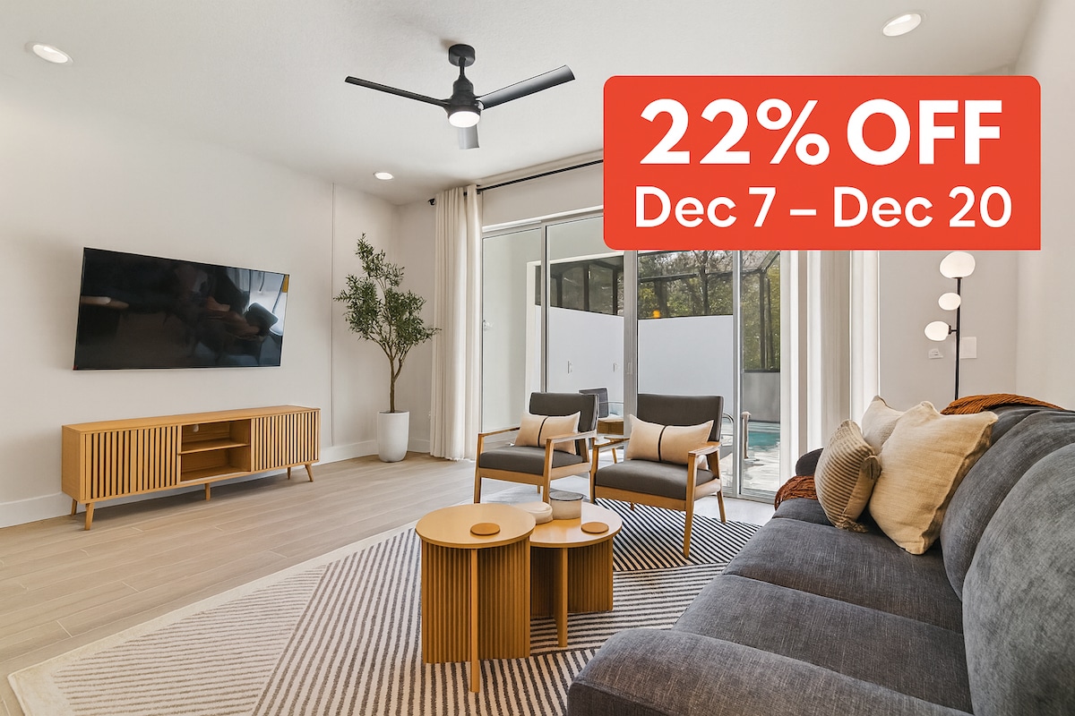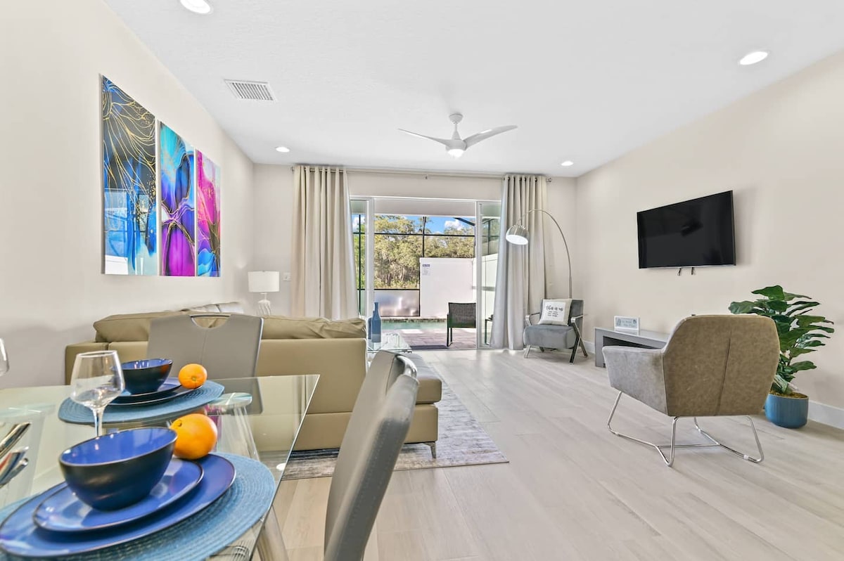 Your modern oasis awaits! This newly built home features a private splash pool, perfect for relaxing after a thrilling day at the parks, just 20 minutes from Magic Kingdom. Unwind with smart TVs and high-speed Wi-Fi or cook a family meal in the fully equipped kitchen. This space is thoughtfully designed for comfort and style, creating the perfect, sleek retreat for your entire group's Disney adventure. (Note: Pool heat is included! For guest safety, the heater deactivates below 60°F).