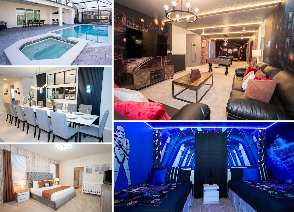 迪士尼附近带泳池的10卧室别墅+主题房