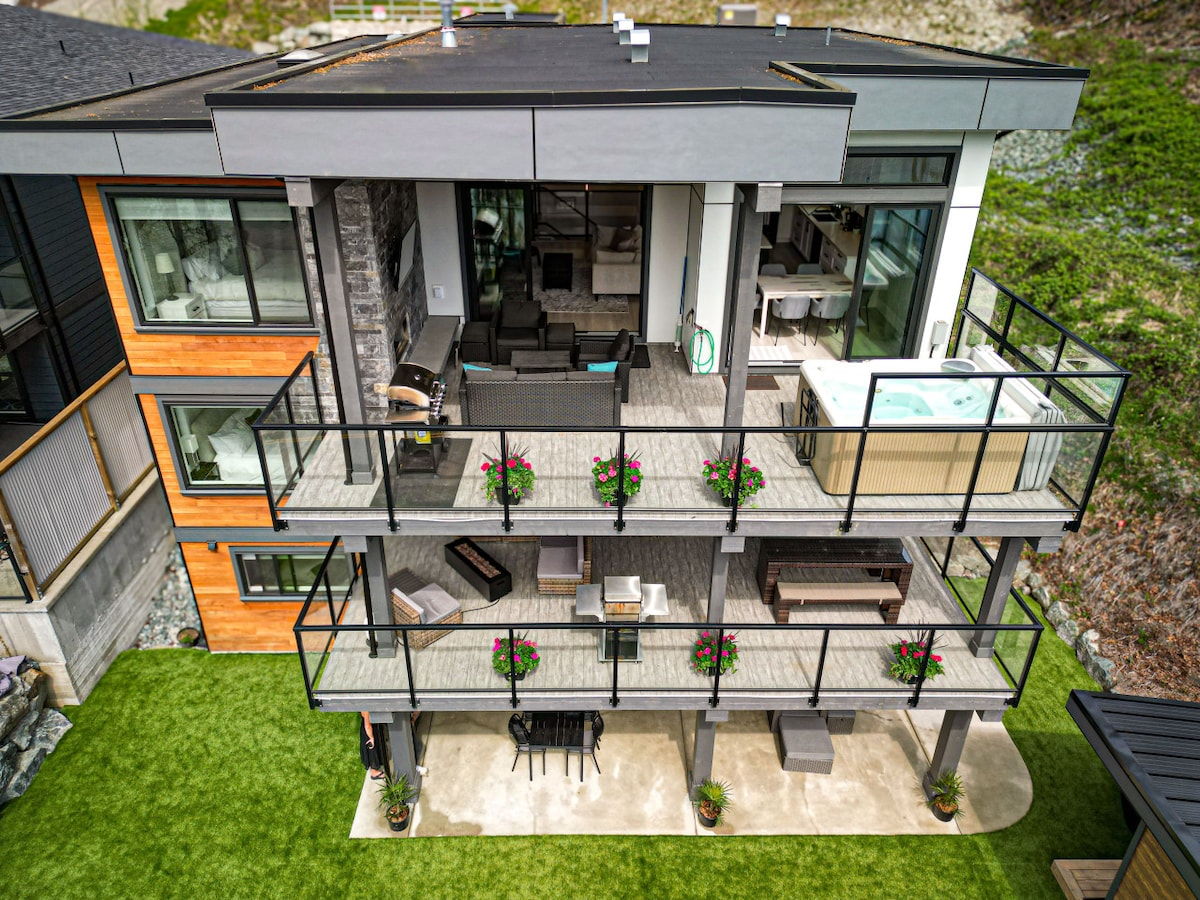 Our bright and sunny, south facing, west coast villa is perched on Mt. Holmes, towering above the quaint town of Youbou and overlooking the spectacular Cowichan Lake. The home has a large open plan living, dining and chef’s kitchen. Sliding doors throughout offer access to your huge wrap around deck with large private hot tub, large private swimming pool area, sun loungers/hammocks, conversation sets, outdoor dining & BBQ.