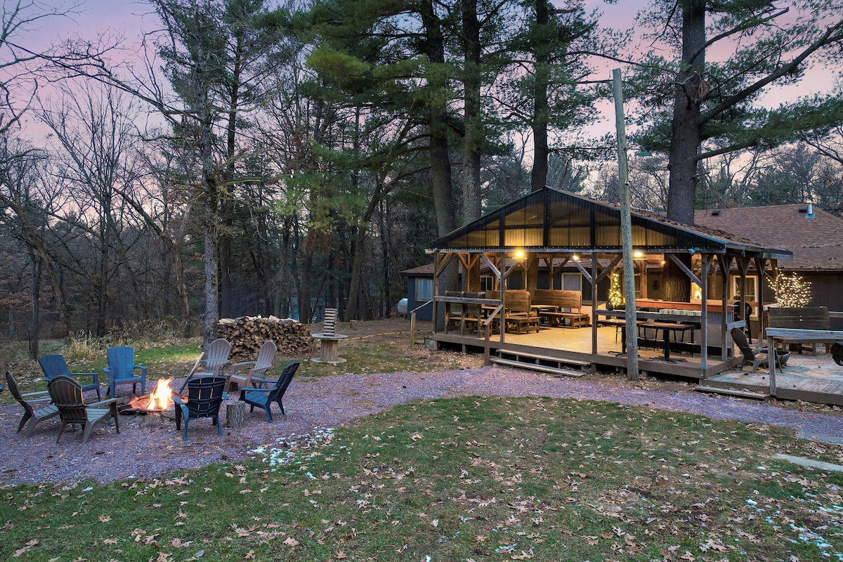 平均评分 5 分(满分 5 分),共 54 条评价树林中的小木屋,带火坑和门廊。
