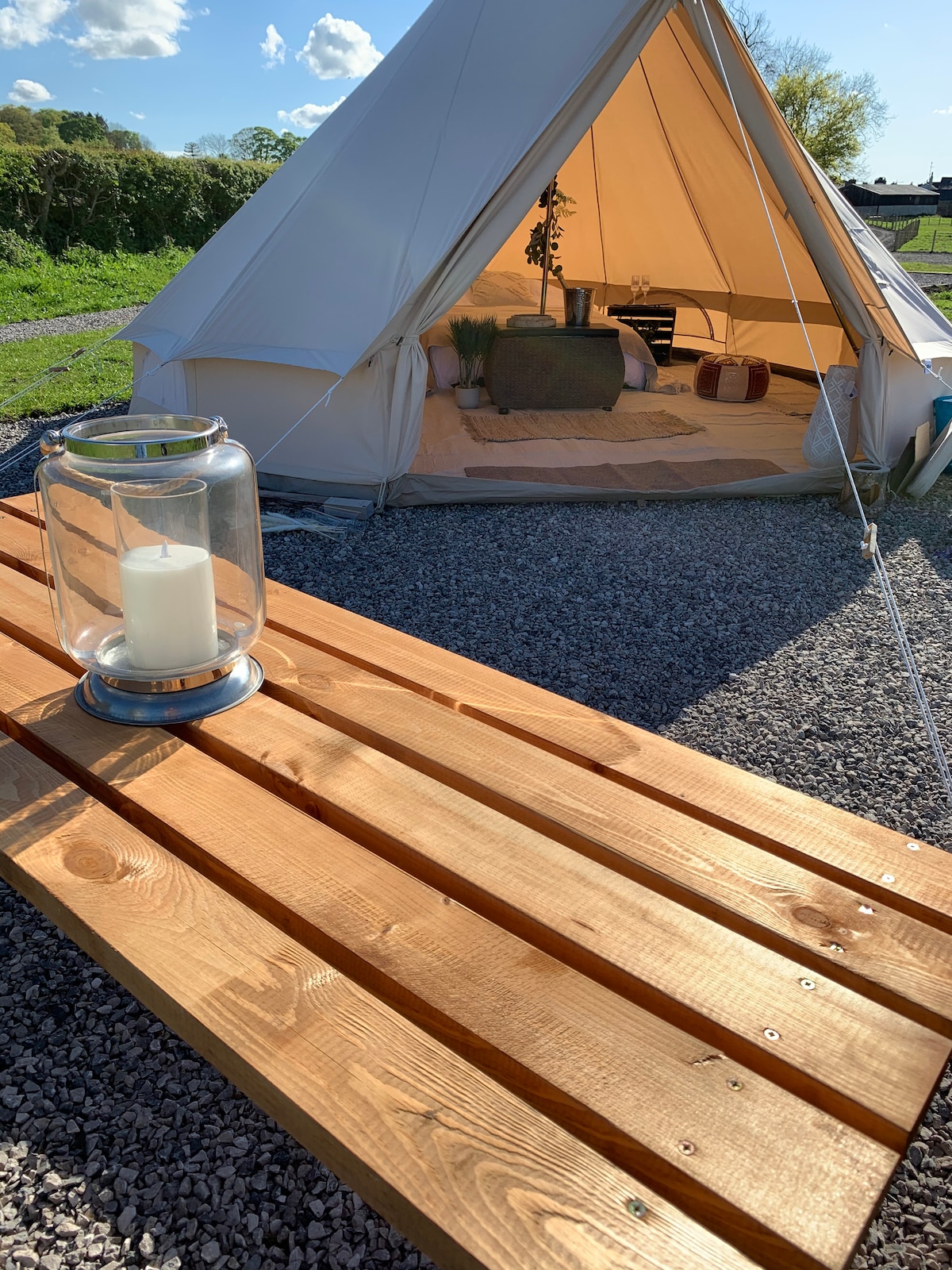 Let us take away the camping hassle and stay in one of our ready pitched Bell tents. This is wild-style camping and simple facilities include porta-toilets and a solar shower. With just a handful of bell tents on a working farm with stunning country views, yet just 25 minutes’ drive to Carlisle’s handy facilities and attractions.You’ll find riverside walks along the Eden and a choice of national parks to visit. You can barbecue on site or there are village pubs to enjoy a 10 minute drive.