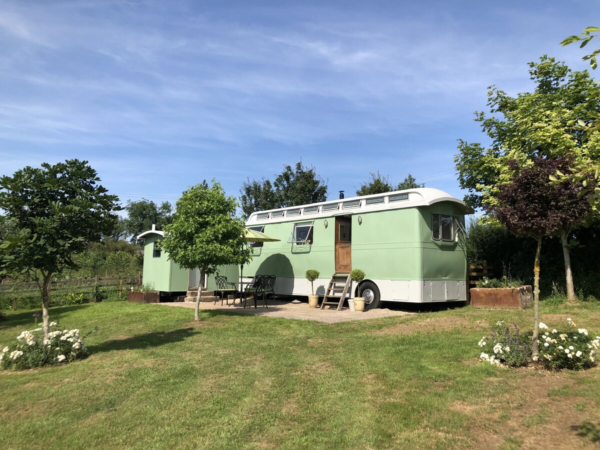 A beautiful, original 1950s Bowtop caravan next to a stream with wood-fired hot tub* and chimnea for your exclusive use. Lovingly restored by your host Annabel to combine the traditional feel of Romany life with modern day living. Langtonbury provides all you could want for your glamping holiday; Full size double bed, Table and seating to relax at. A small sink with fresh water, 2 ring hob Kettle + toaster Electric lights Adjacent bathroom *(Hot tub use incurs a small extra charge)