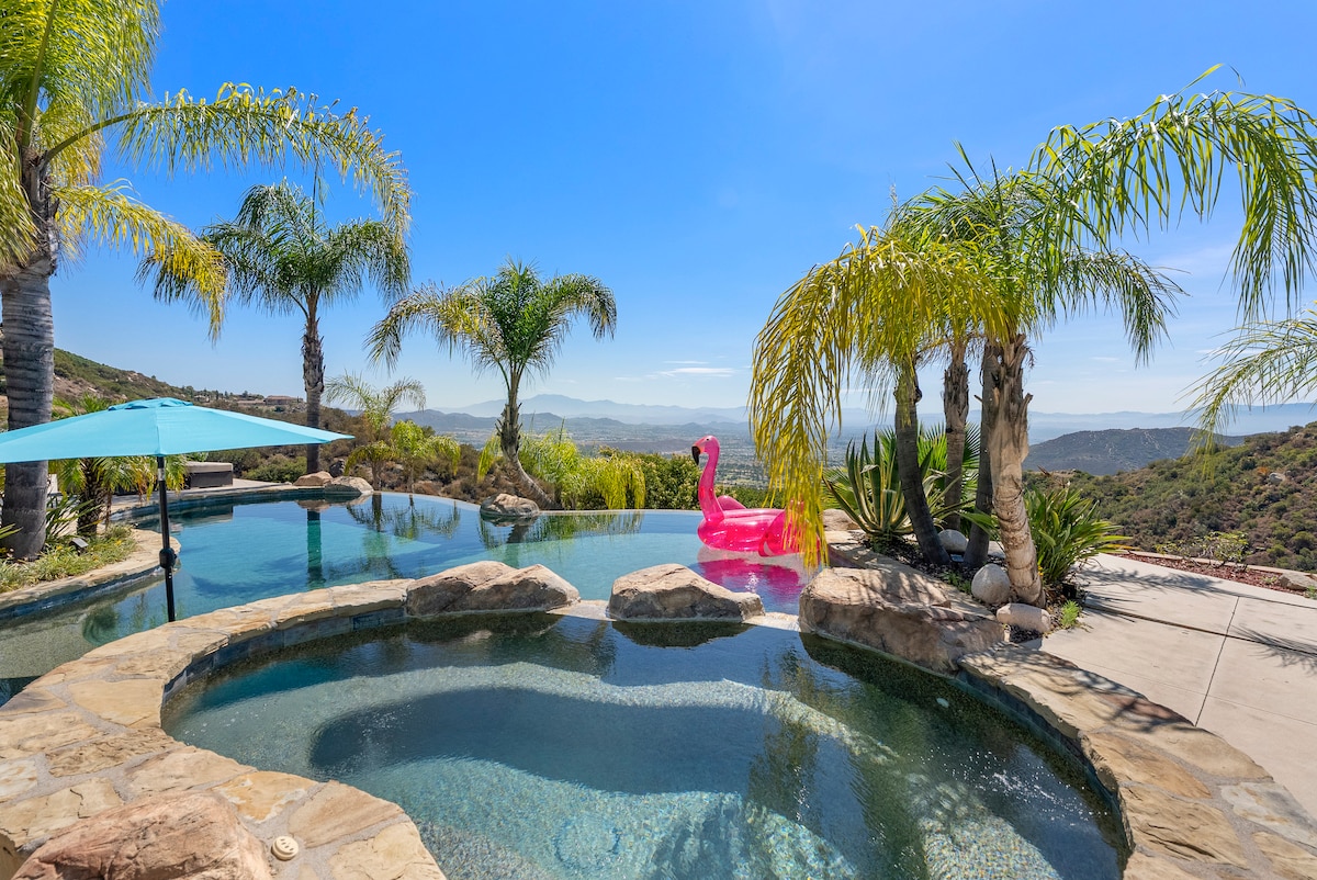 This RARE private 4100 sq ft. 🌴PALM TREE RESORT STYLE Home, it's a dream get-away + 6 Bedrooms ( Sleeps up to 14) • 2Cal King + 4 Queen 5 Bathrooms + 3 Sleep sized couches + 3 Chaise Pool Chairs + Salt water POOL + fire table + 12-14 person SPA * $100 per stay +WHOLE house water system + reverse osmosis ,filtered water for kitchen Center Southern California 3 Miles LAKE Elsinore 28 miles to Dana Point Beach 18 Miles to Temecula Wine Country 33 miles DISNEYLAND 🪂 Skydiving