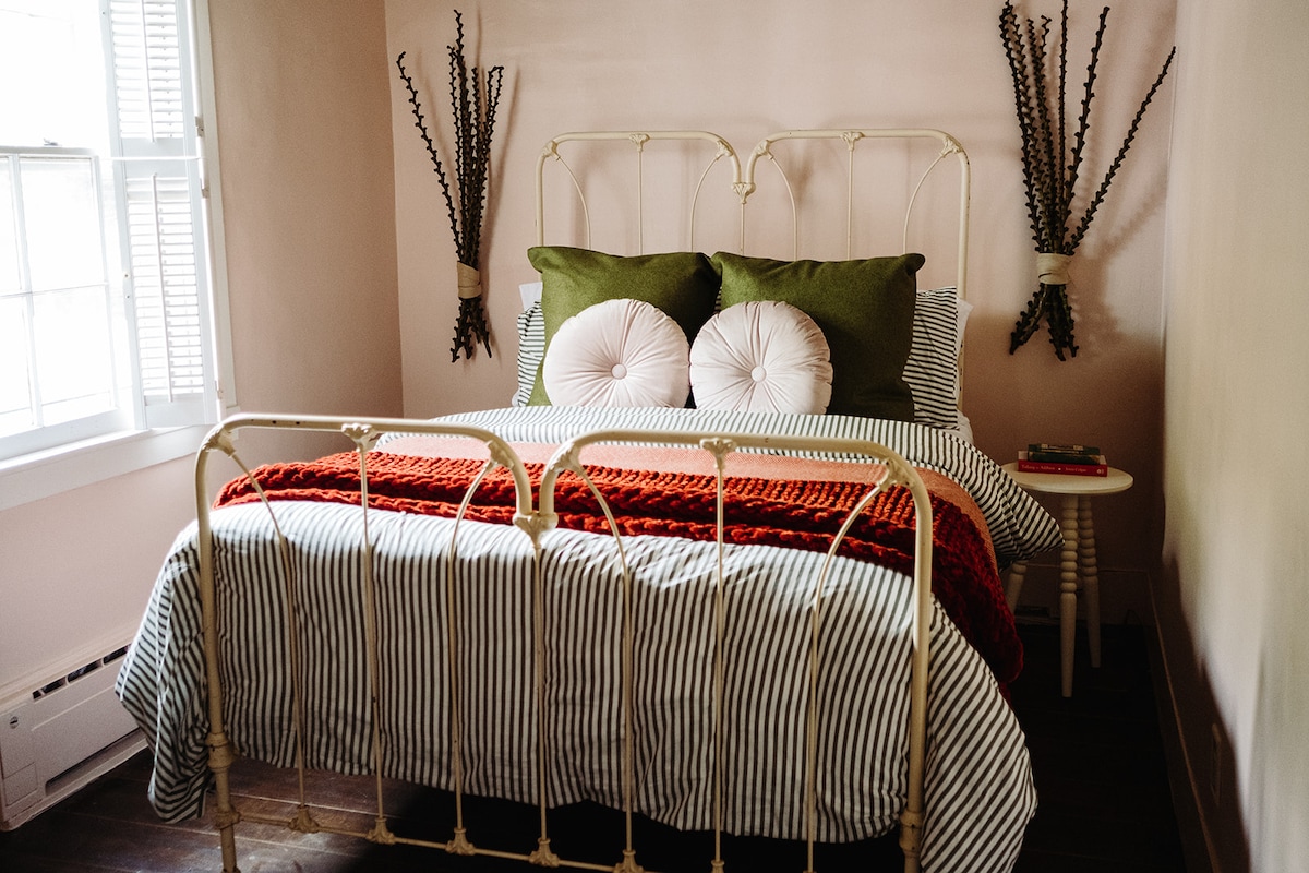 “Set wide the window. Let me drink the day.” –Edith Wharton The era of the bygone written prose influences this dreamy room with luxury linens, original art, and books of poetry. Located in the City of Cleveland, the entire home was designed by BISE BESPOKE, specifically for Airbnb guests who have an appreciation for music, art, literature, international travel and cuisine.