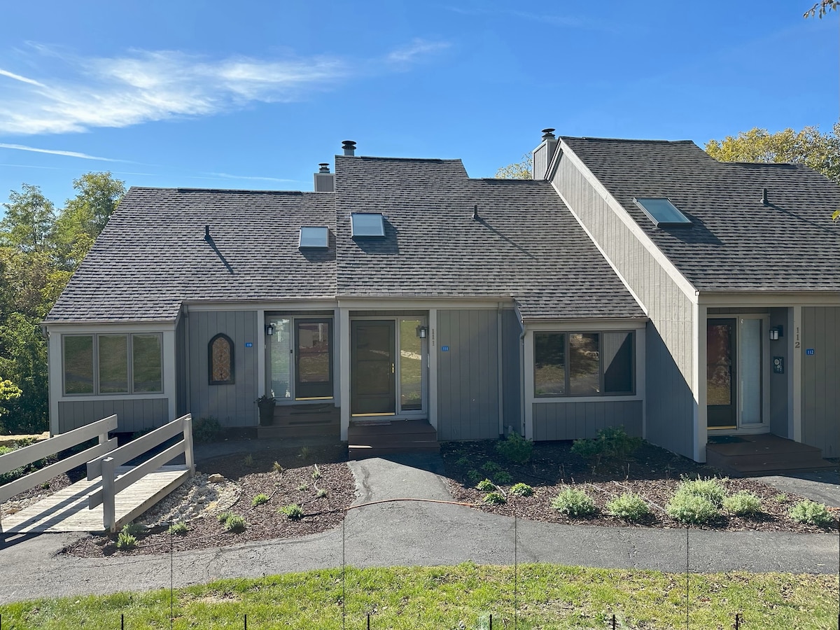 Welcome to Scenic Serenity, a charming golf villa in The Galena Territory, surrounded by peaceful wooded views. ✔ Main Level (Lower Level): Features vaulted ceilings, a cozy seasonal fireplace (Oct-Apr), two skylights, and an open-concept layout. Enjoy a roomy eat-at bar, a bedroom with full bath access, and a sleeper sofa in the living area. ✔ Upper Level: Overlooks the living and dining rooms, offering a spacious bedroom with a private bath and a utility closet with a washer/dryer.