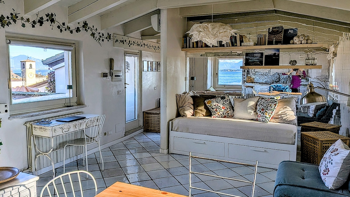 Bright apartment of 67 m located on the second floor of a historic building, directly on the lake, soundproofed, romantic, with a private balcony overlooking Mount Baldo and the small old port. Entirely renovated in 2020, it has luxury details, a perfect retreat for couples and families. Private terrace. Private parking in a garage at 300 m , with free shuttle service. Enjoy the lake Garda and the village of Limone, from a unique and exclusive point of view !