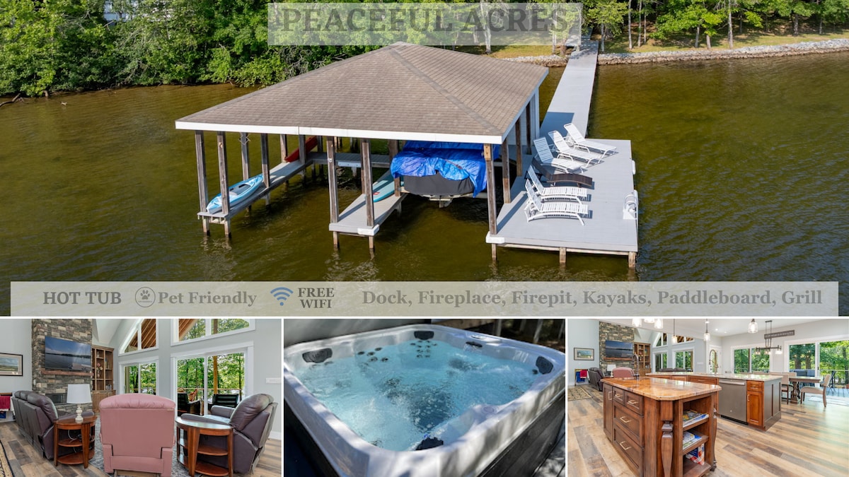 Get away from it all and enjoy this spacious lakefront home with the family or group of friends! Open concept with plenty of space to spread out on the expansive open deck, covered screened porch and double decker dock! By day, explore on the paddleboards/kayaks provided or launch your own boat right in our neighborhood or just chill out on floats all day in the calm cove. By night, relax by the huge firepit area, take a dip in the hot tub, do a puzzle/play games. Do it all or do nothing at all!