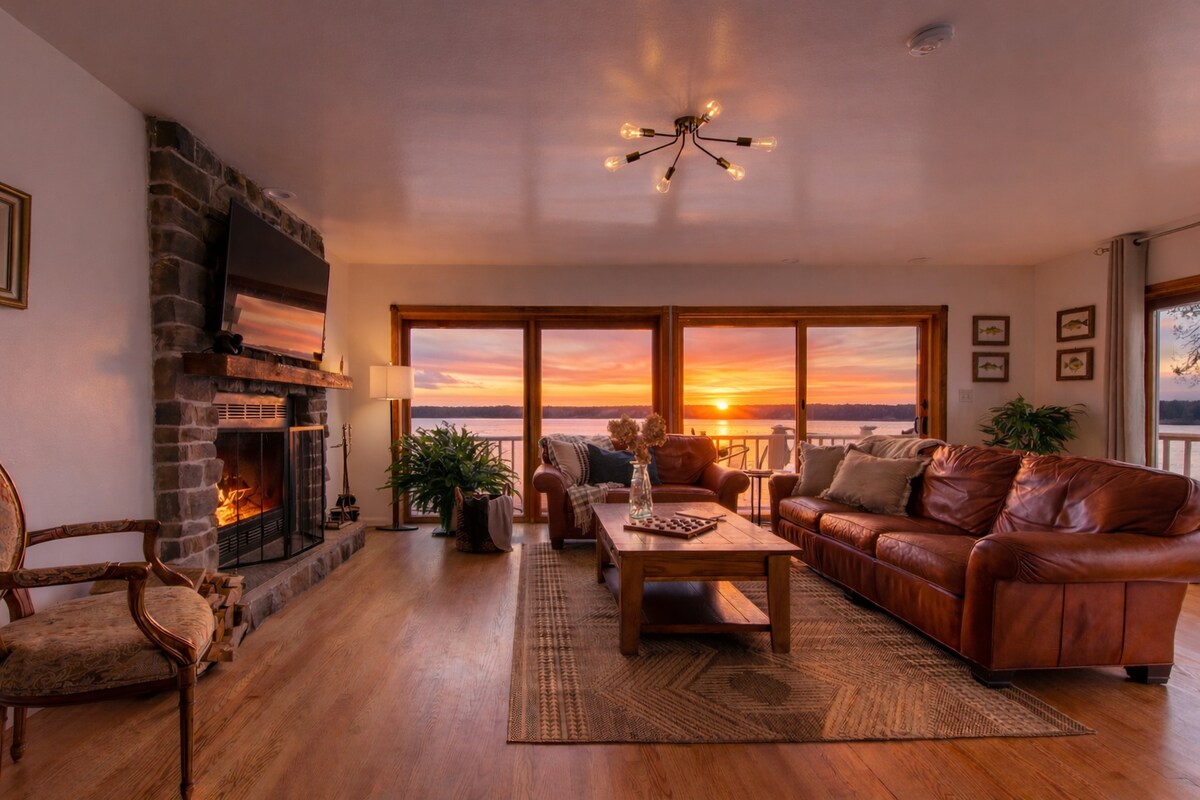 宽敞的湖滨度假屋|日落景观|火坑